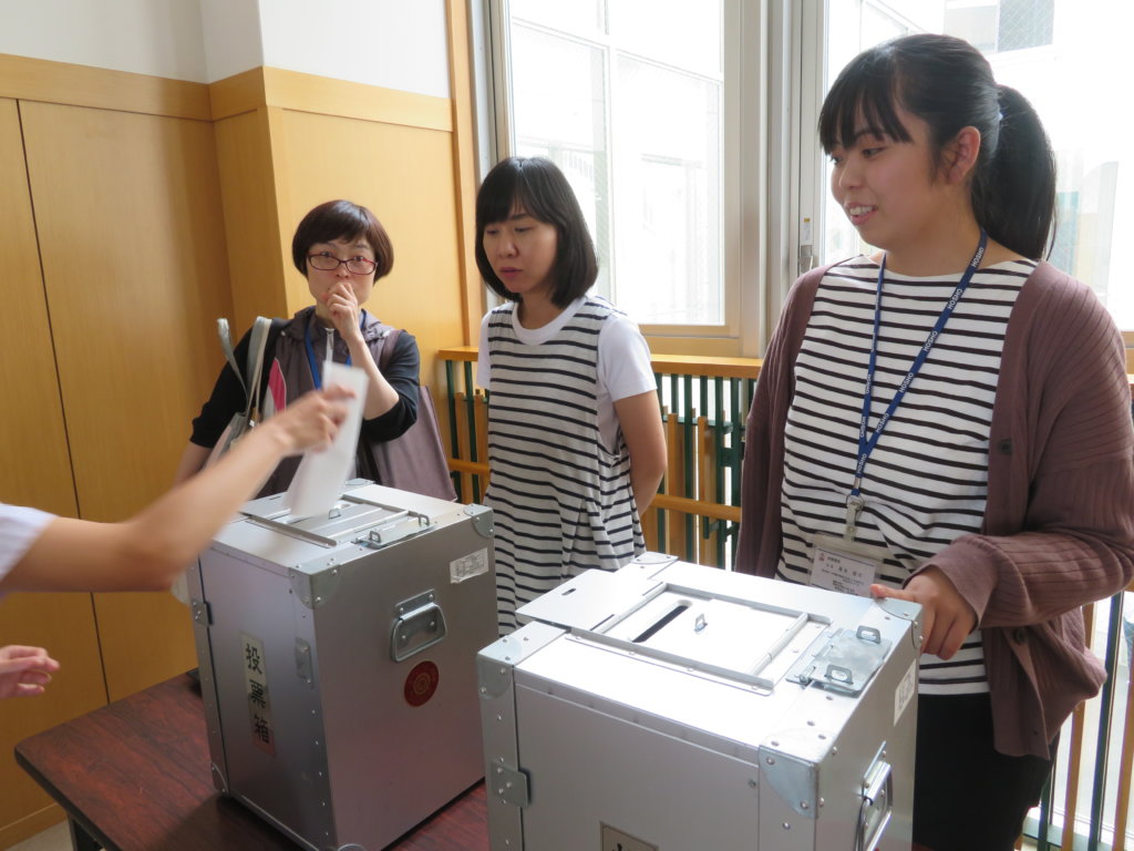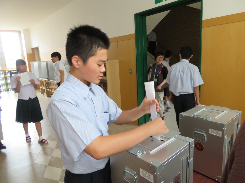 演説後は、実際の選挙で用いる記載台と投票箱を利用し、実際の選挙会場のような臨場感を味わいながら投票します。