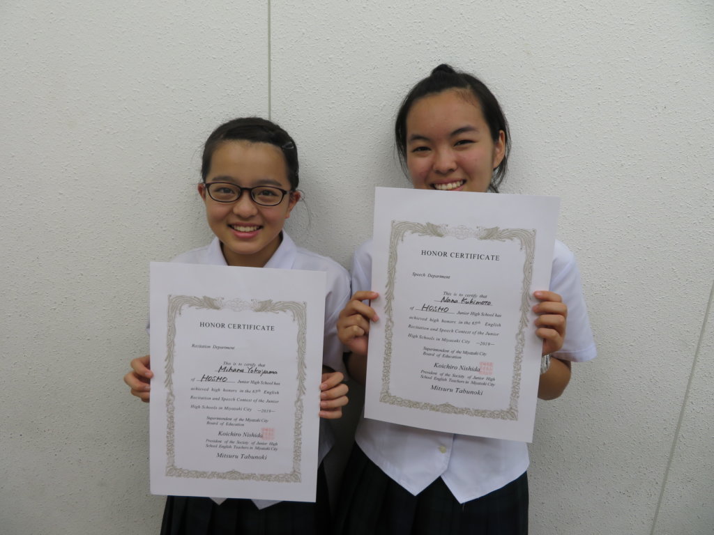 本校からは、暗唱の部に J1B 横山望芭さん、