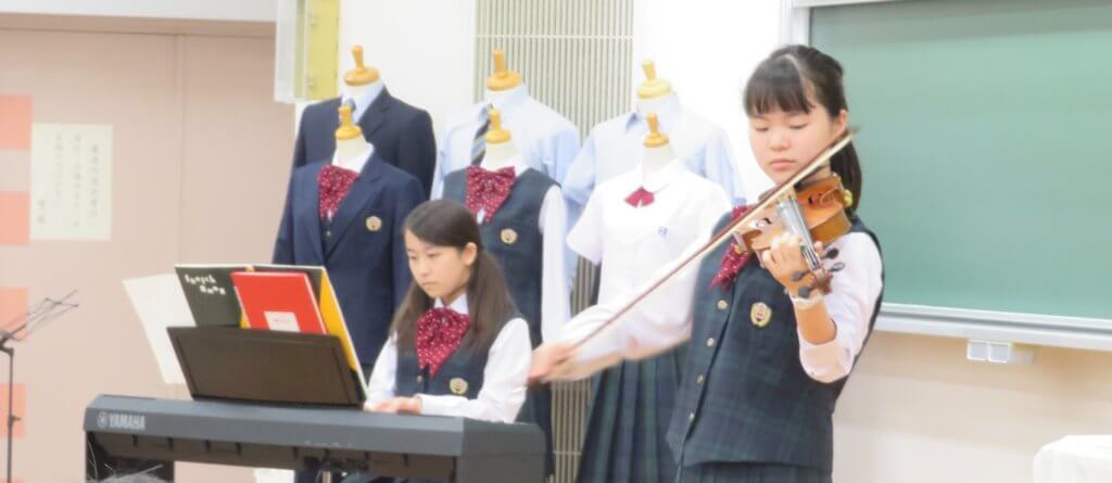 さて、説明会はハンドベル演奏と、ヴァイオリン&ピアノ演奏から開始です。