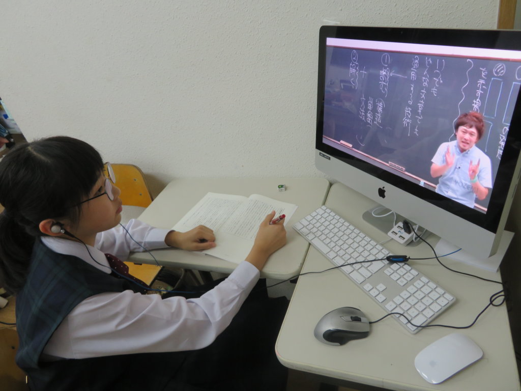 J3では、学級の時間などを利用してサテラインの授業を見ています。