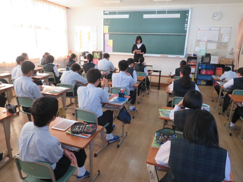 現在、学校では様々な先生方の研究授業が行われています。同じ教科の先生だけでなく、他教科の先生も授業を参観し、意見交換を行っています。教師の指導力の向上はもちろんですが、多くの高校の先生方に中学生の様子を見ていただく機会にもなっています。