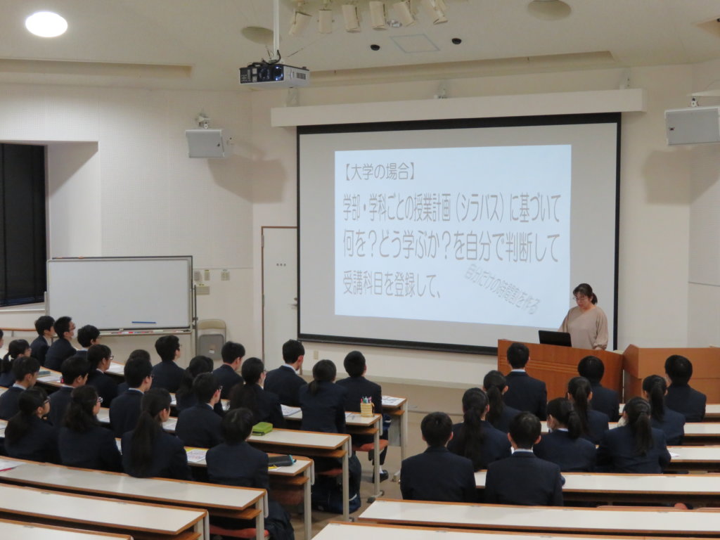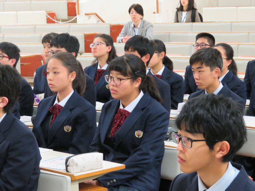 見学の前に、大学と中学校の違いについて説明してくださいました。