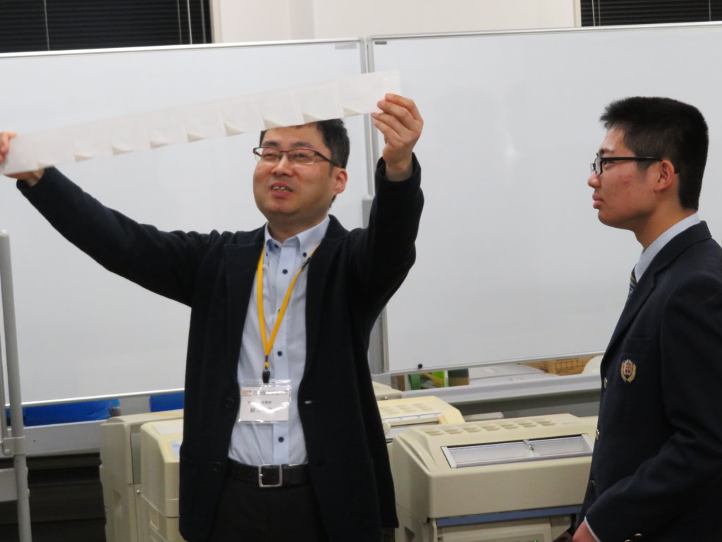 次に、実際に大学の講義や研究で利用する教室や機材を紹介してくださいました。紹介をしてくださったのは、緒方先生です。