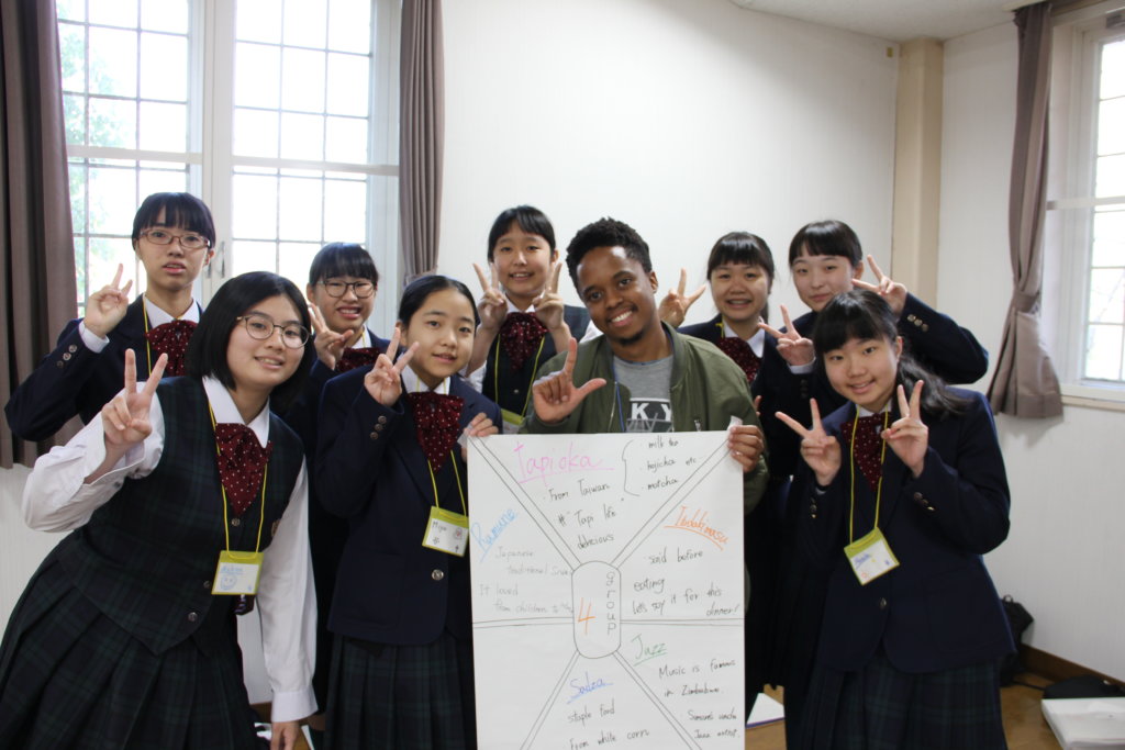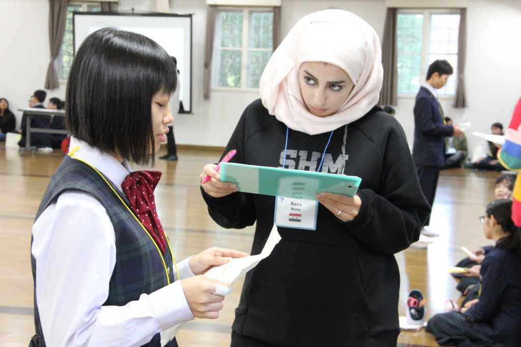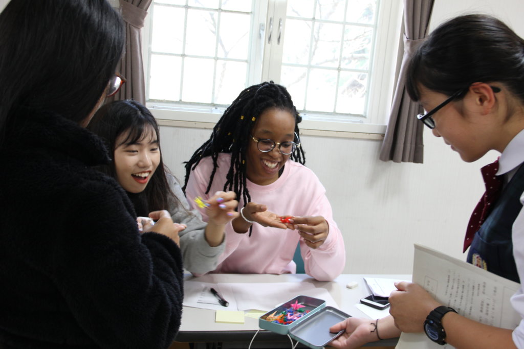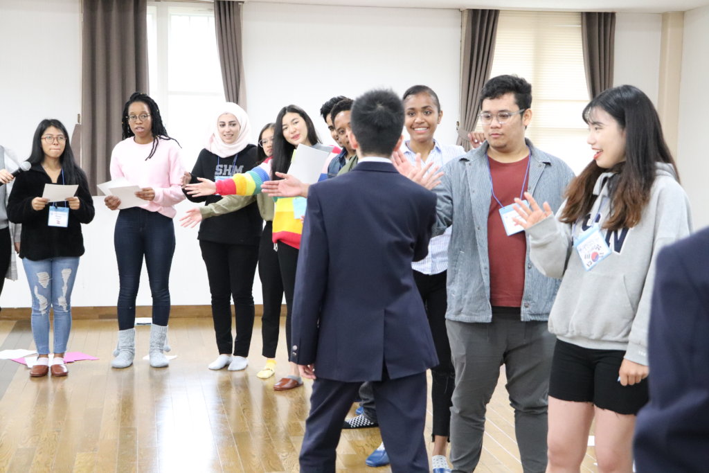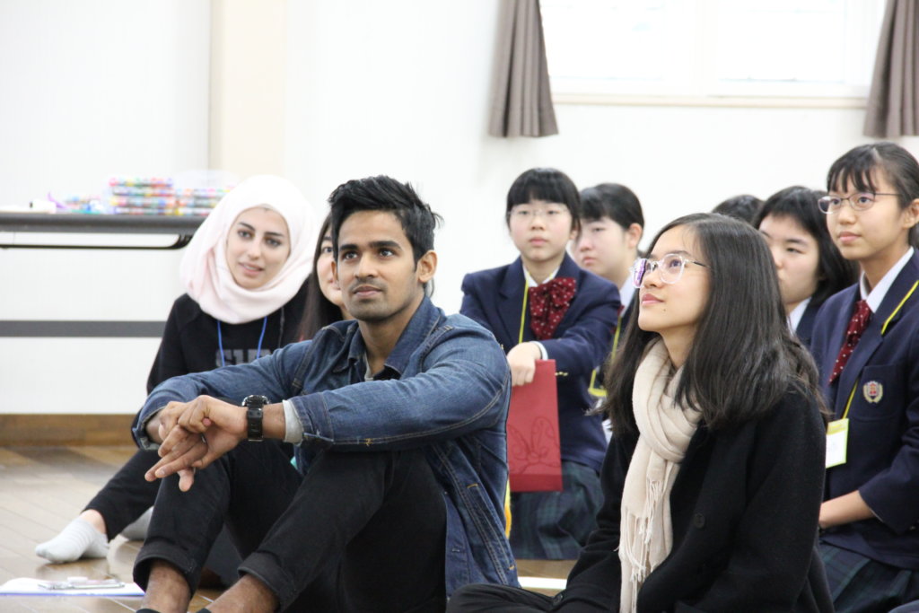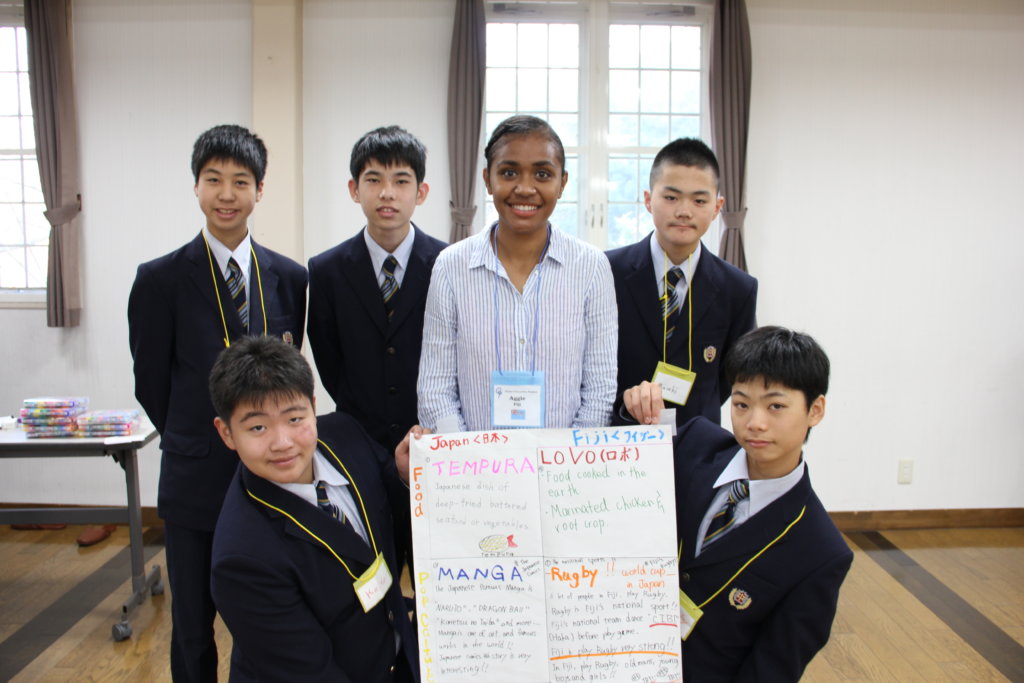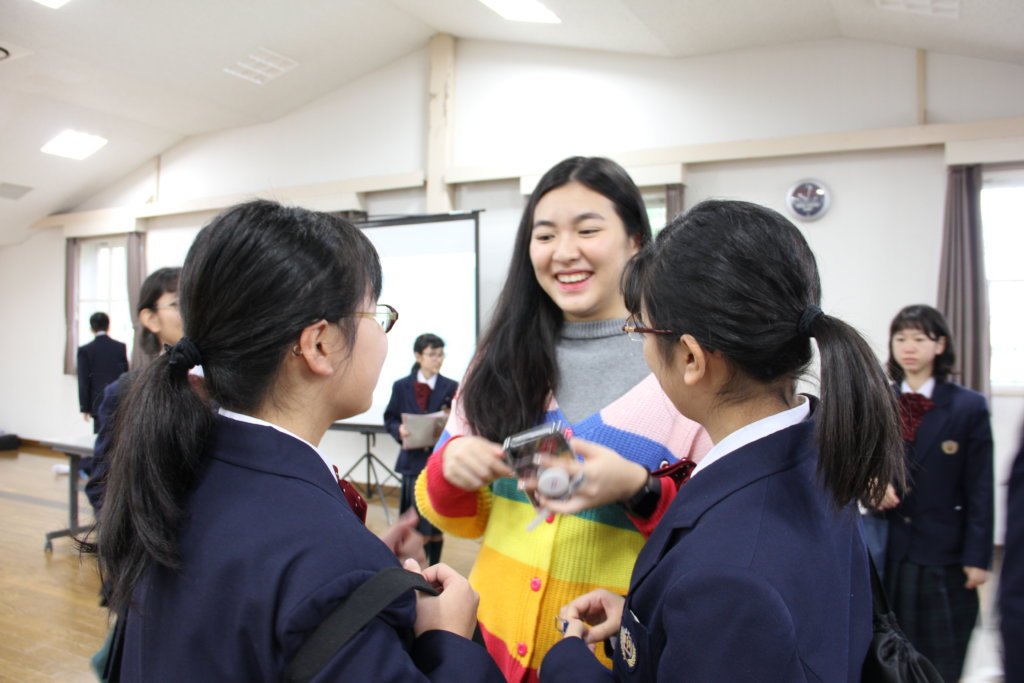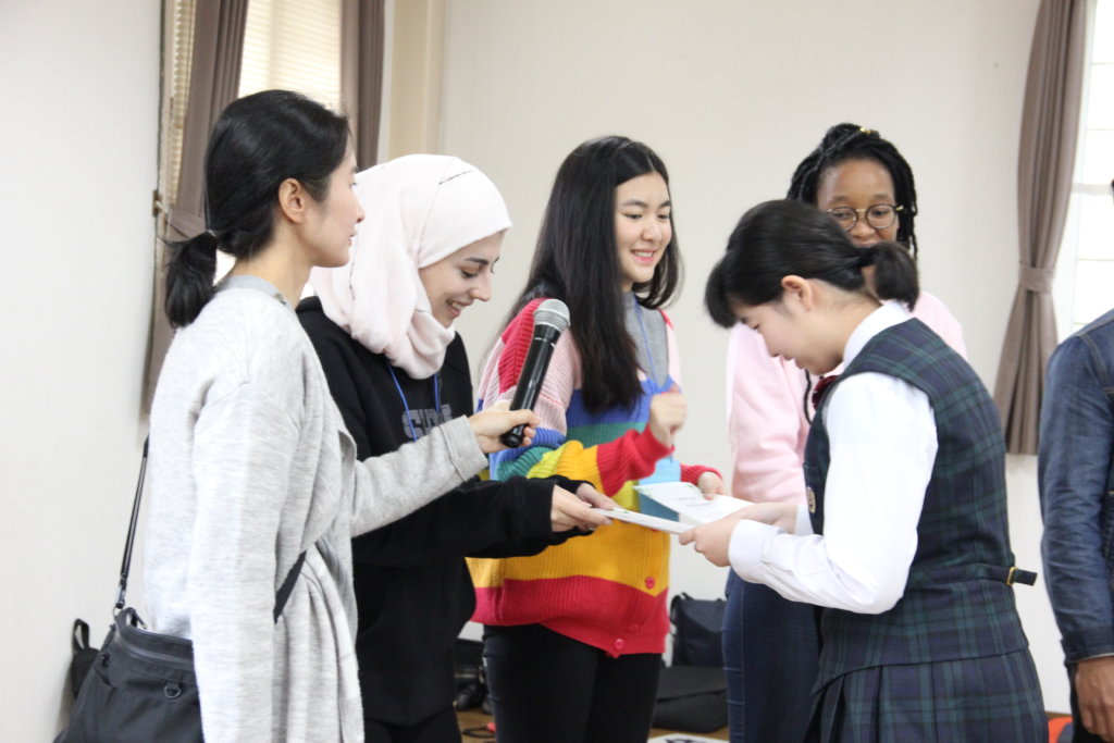 グローバルビレッジプログラムの修了式。ここでJ2生全員に修了書が送られます。2日間お世話になったリーダーから一人ひとり修了書を受け取りました。