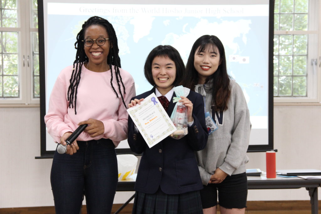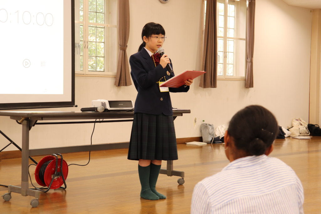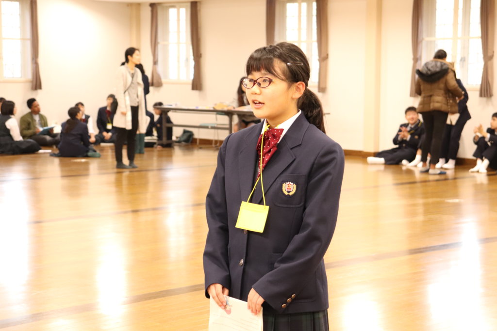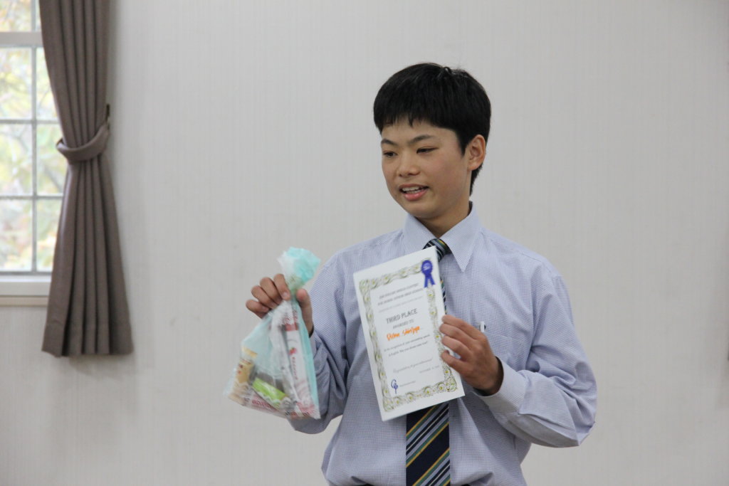 各班の中で最も良いスピーチをそれぞれのリーダーに決めてもらい、選出された生徒は全体で発表をしました。