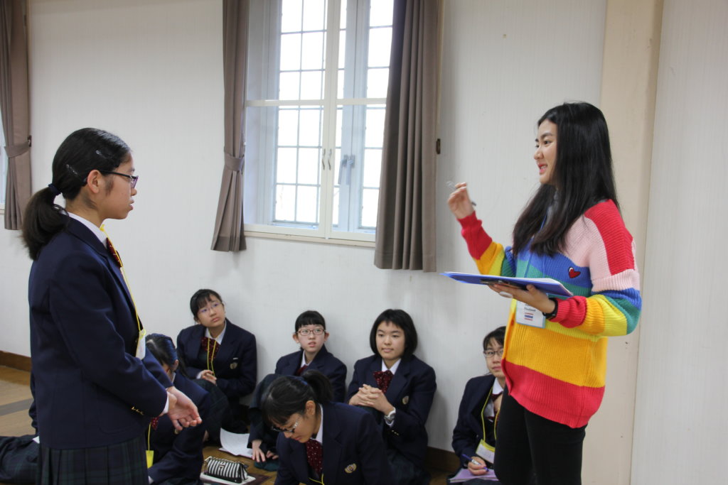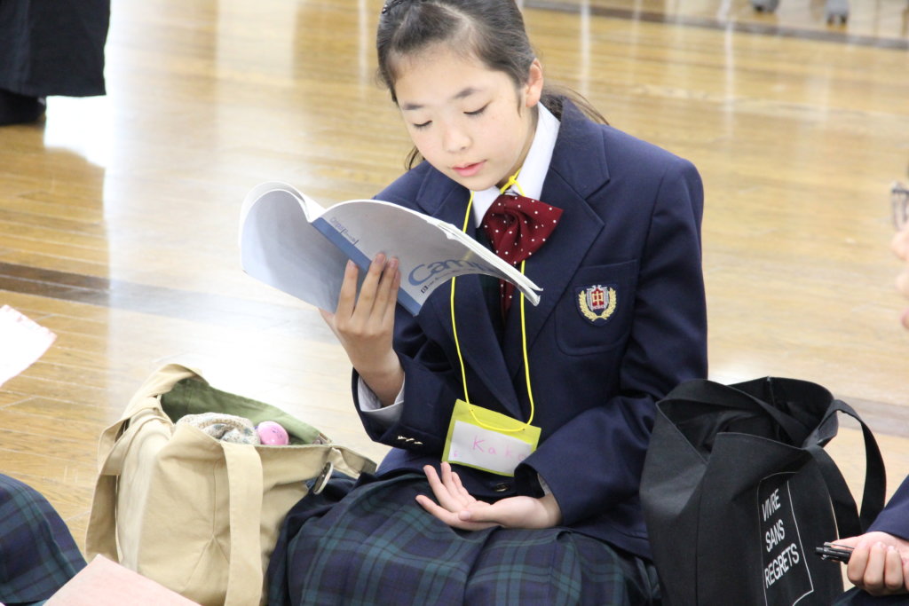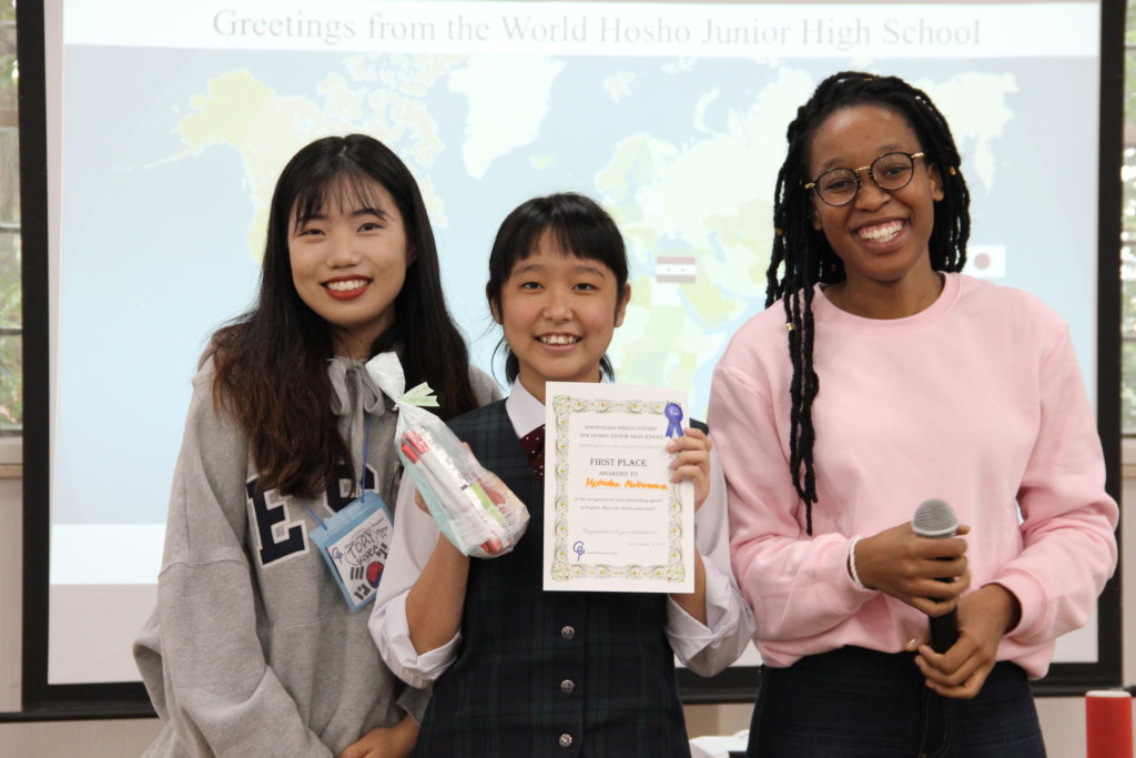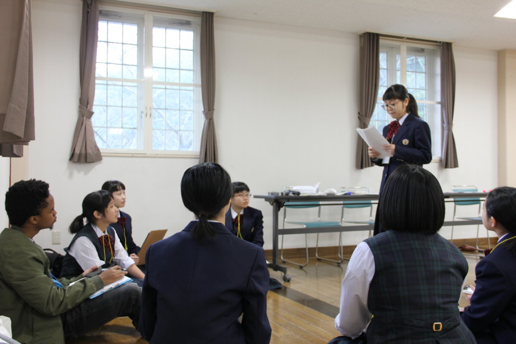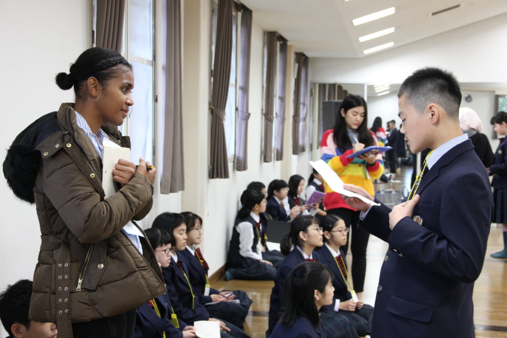 各班の中で最も良いスピーチをそれぞれのリーダーに決めてもらい、選出された生徒は全体で発表をしました。