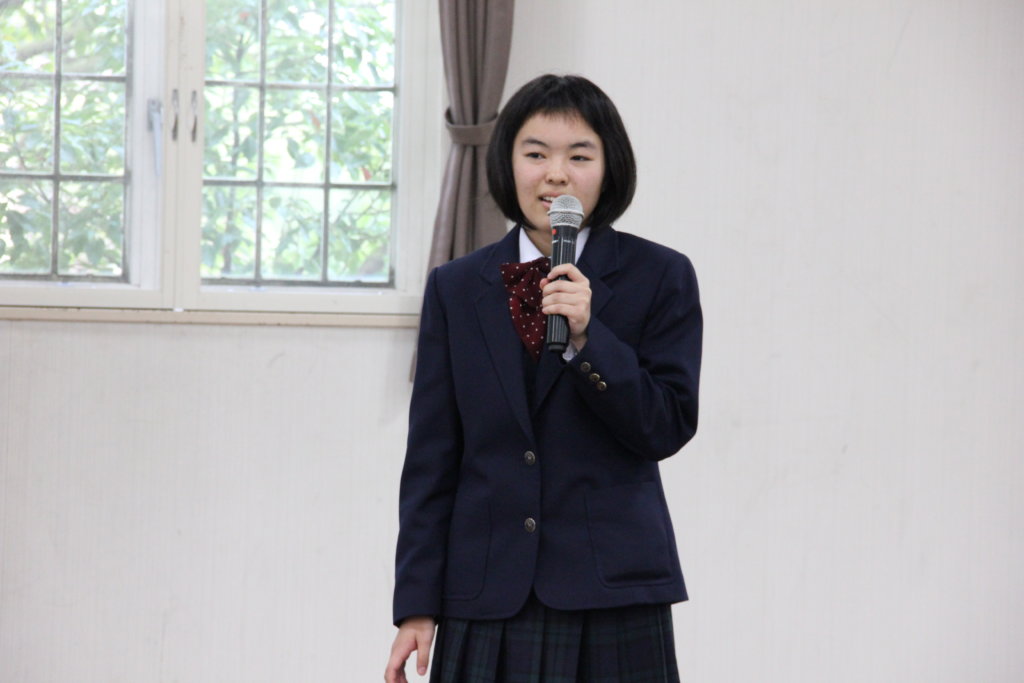 J2生を代表して久木元 菜茄さんよりお礼の言葉を述べました。