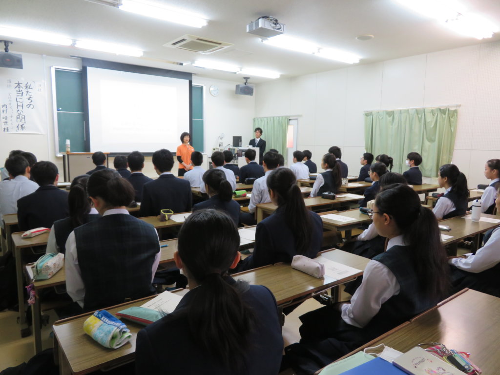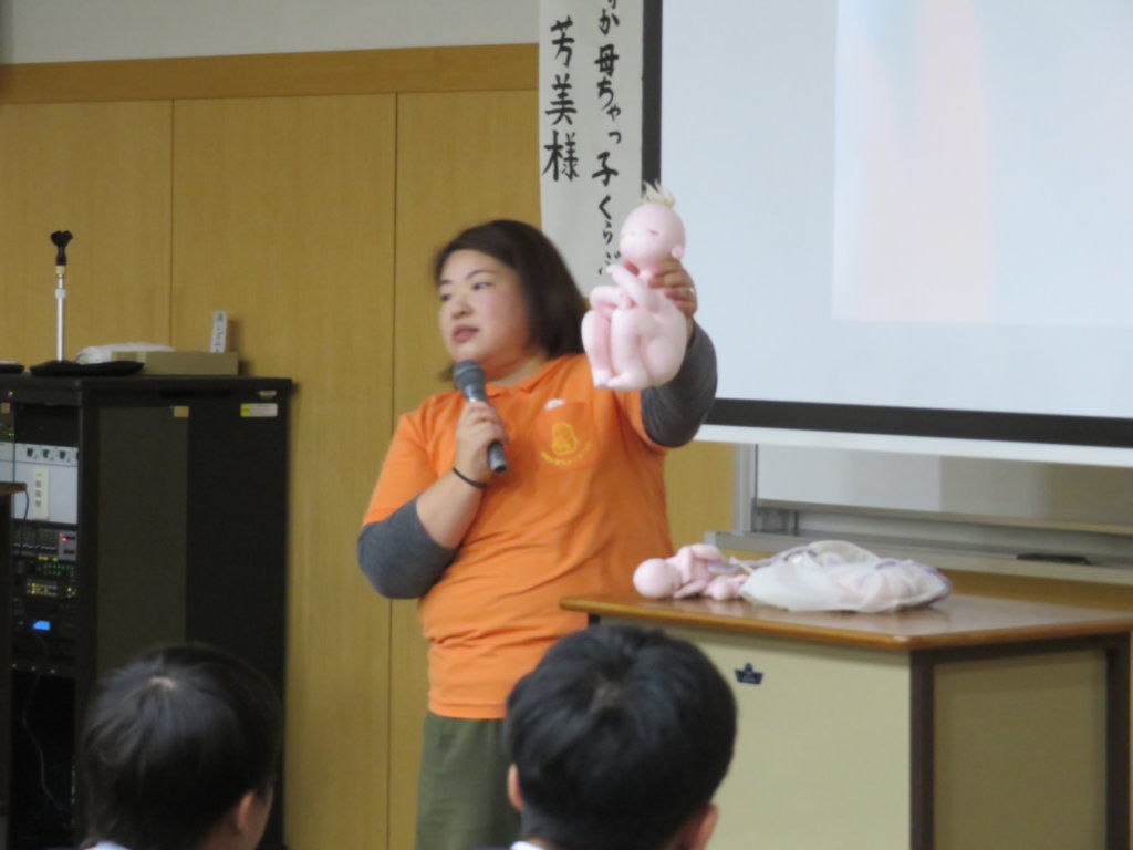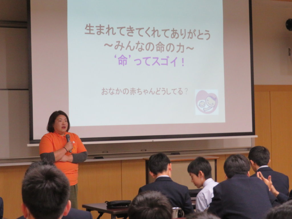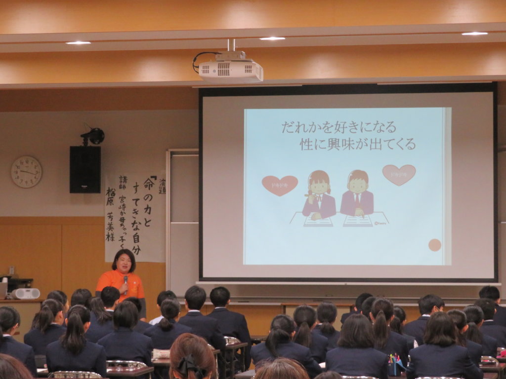 学年ごとにそれぞれの成長に合わせた形で、助産師の先生に講話をしていただきました。普段は恥ずかしくてなかなか真剣に向き合えていない部分も、分かりやすく話をしてもらい、自分のこととして受け止めるいいきっかけになったようです。