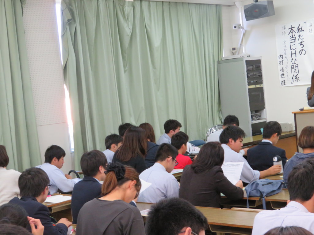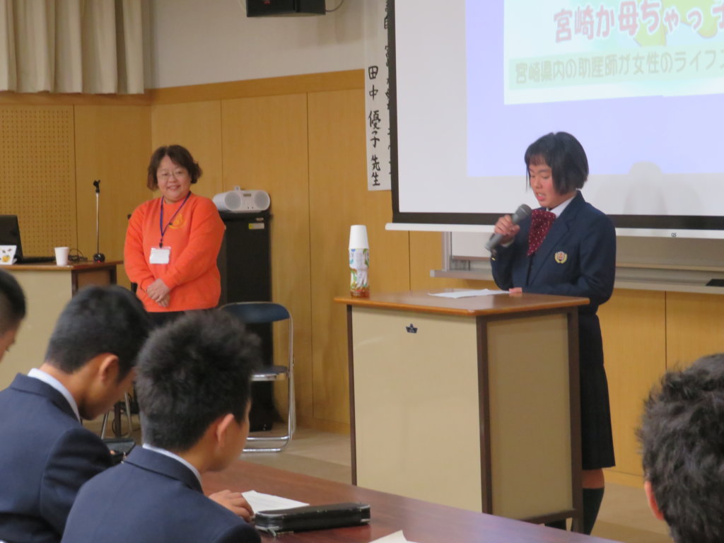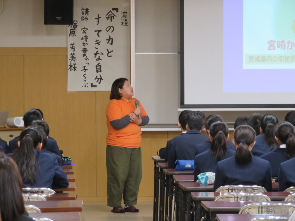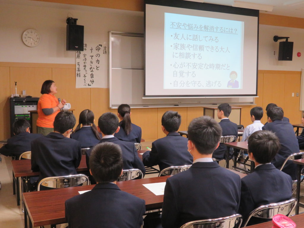 学年ごとにそれぞれの成長に合わせた形で、助産師の先生に講話をしていただきました。普段は恥ずかしくてなかなか真剣に向き合えていない部分も、分かりやすく話をしてもらい、自分のこととして受け止めるいいきっかけになったようです。
