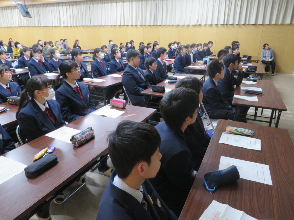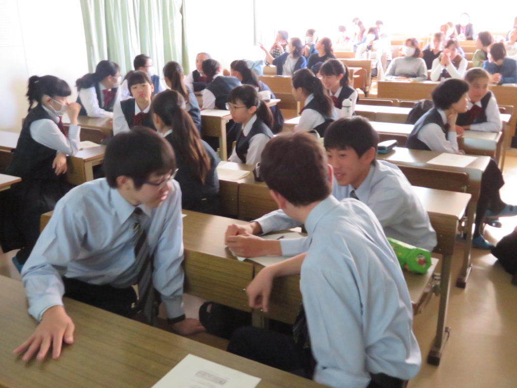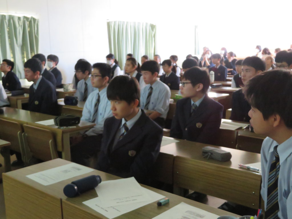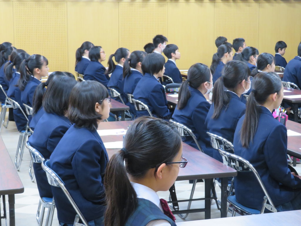 J3は進学説明会と修学旅行説明会が保健講話のあとに行われました。新しい入試制度の説明や高校に入ってからのことなど、具体的な説明があり、高校生になるとこを意識するきっかけになったようです。