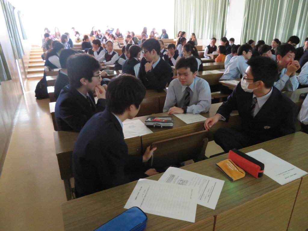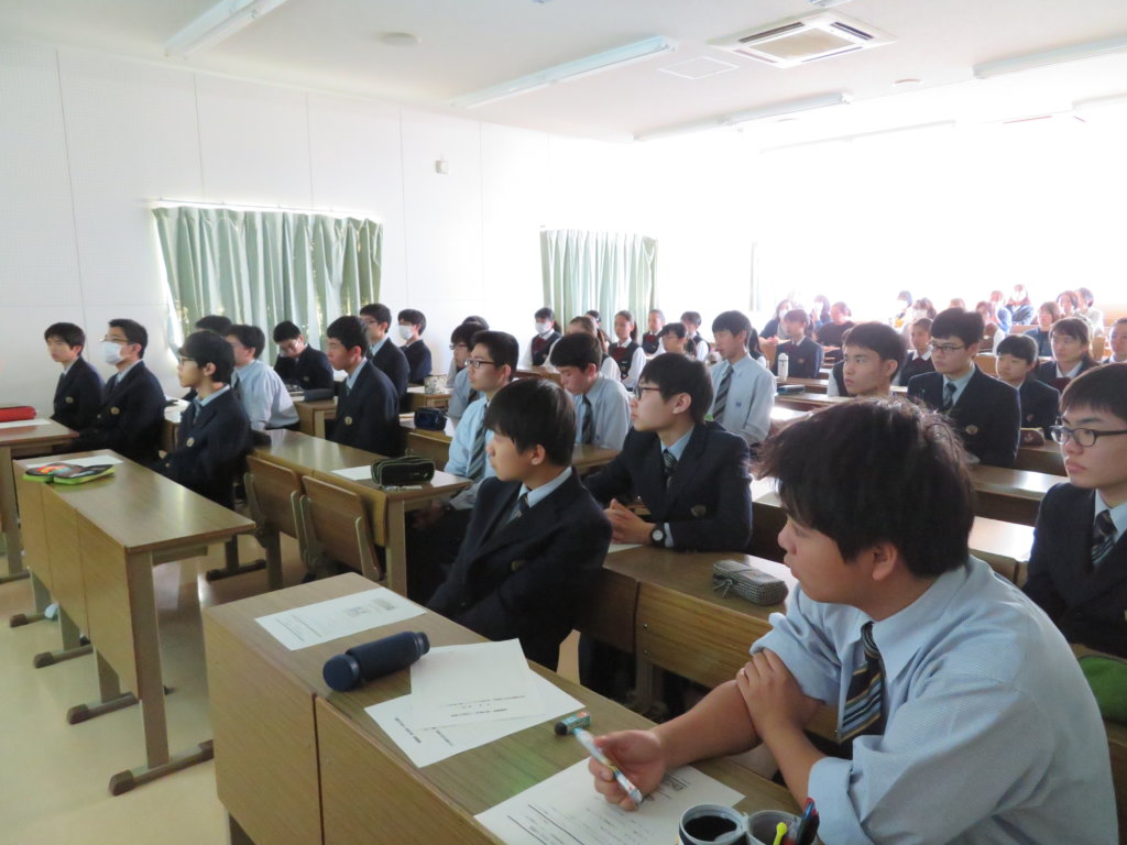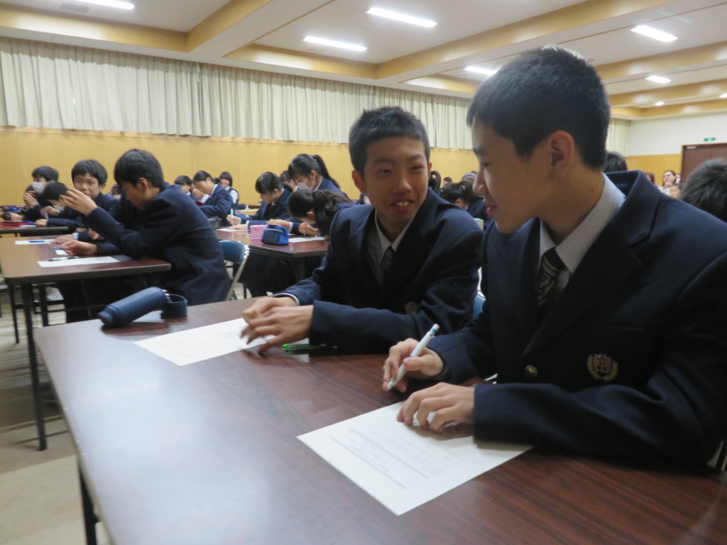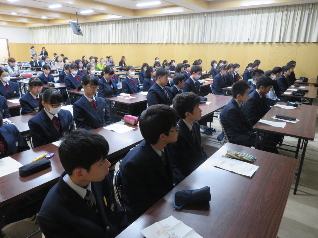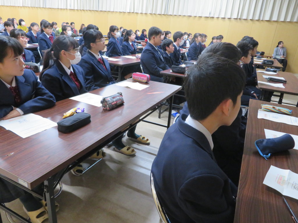J3は進学説明会と修学旅行説明会が保健講話のあとに行われました。新しい入試制度の説明や高校に入ってからのことなど、具体的な説明があり、高校生になるとこを意識するきっかけになったようです。
