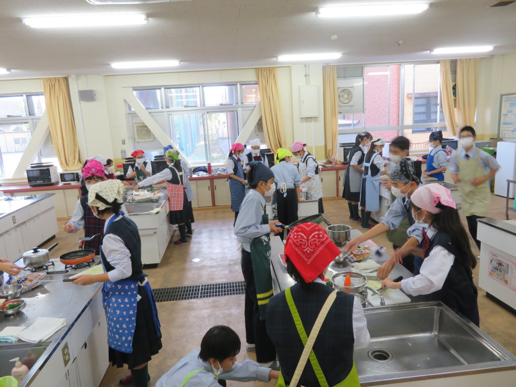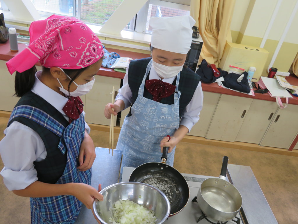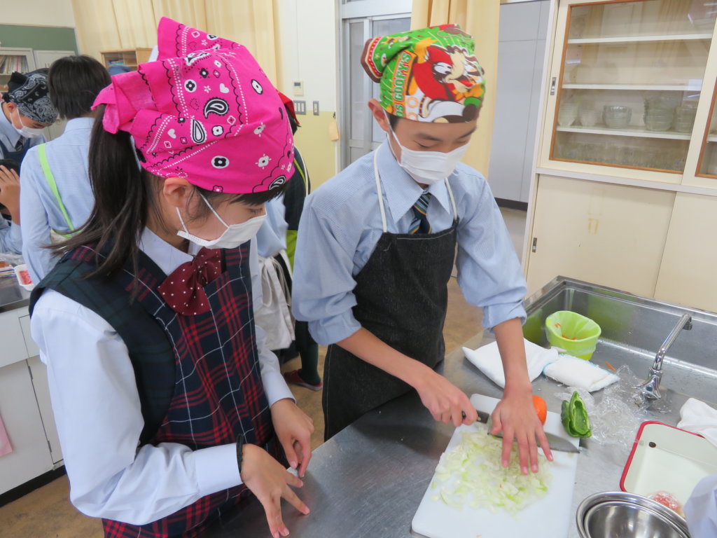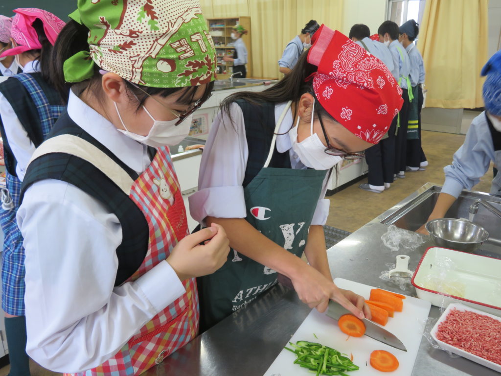 それぞれの班で協力して野菜を切ったり、炒めたりしました。