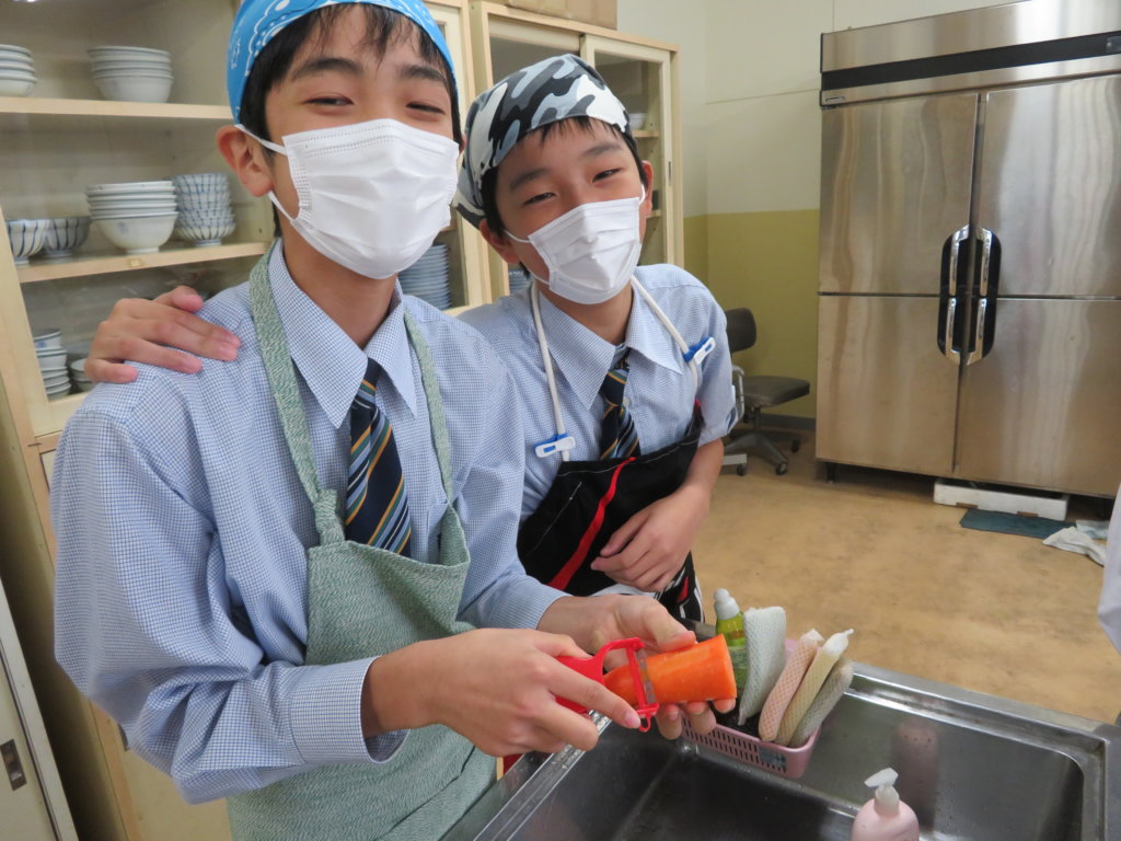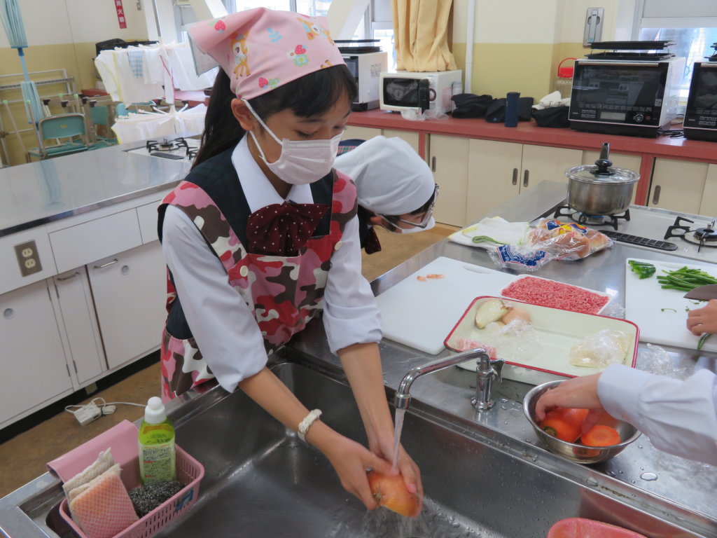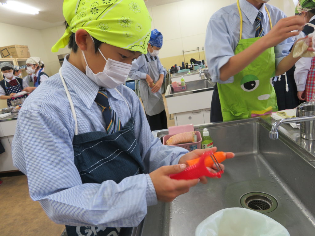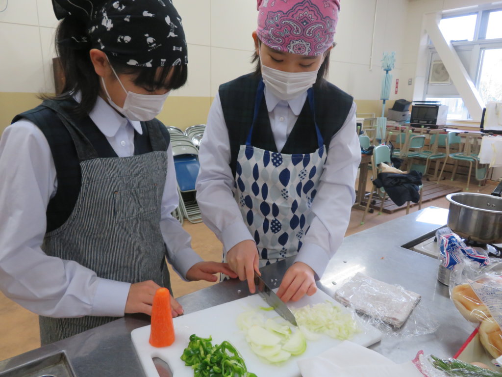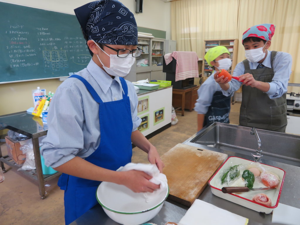 それぞれの班で協力して野菜を切ったり、炒めたりしました。