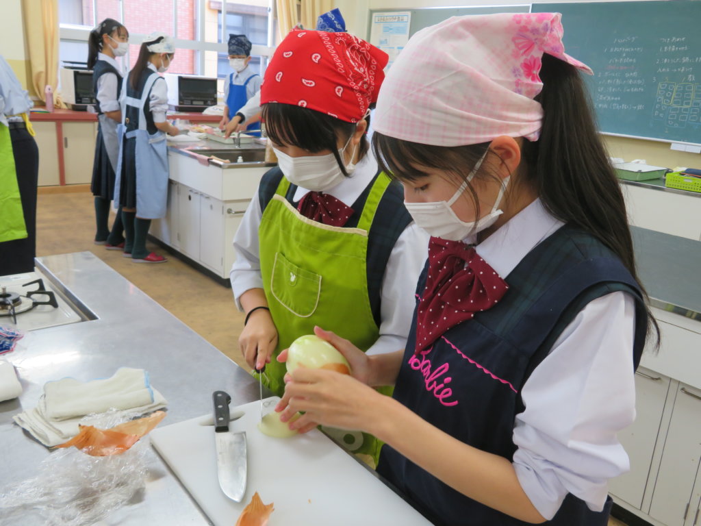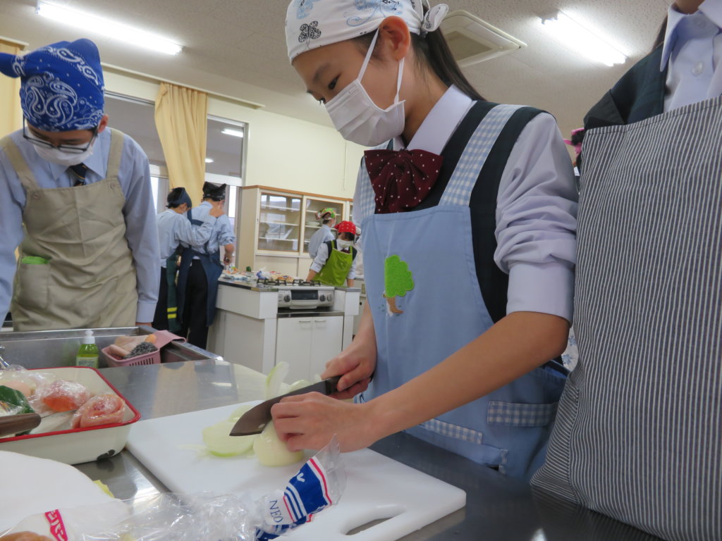 今週の火曜日にJ1生は調理実習が行われました。写真はJ1Bの調理実習の様子になります。