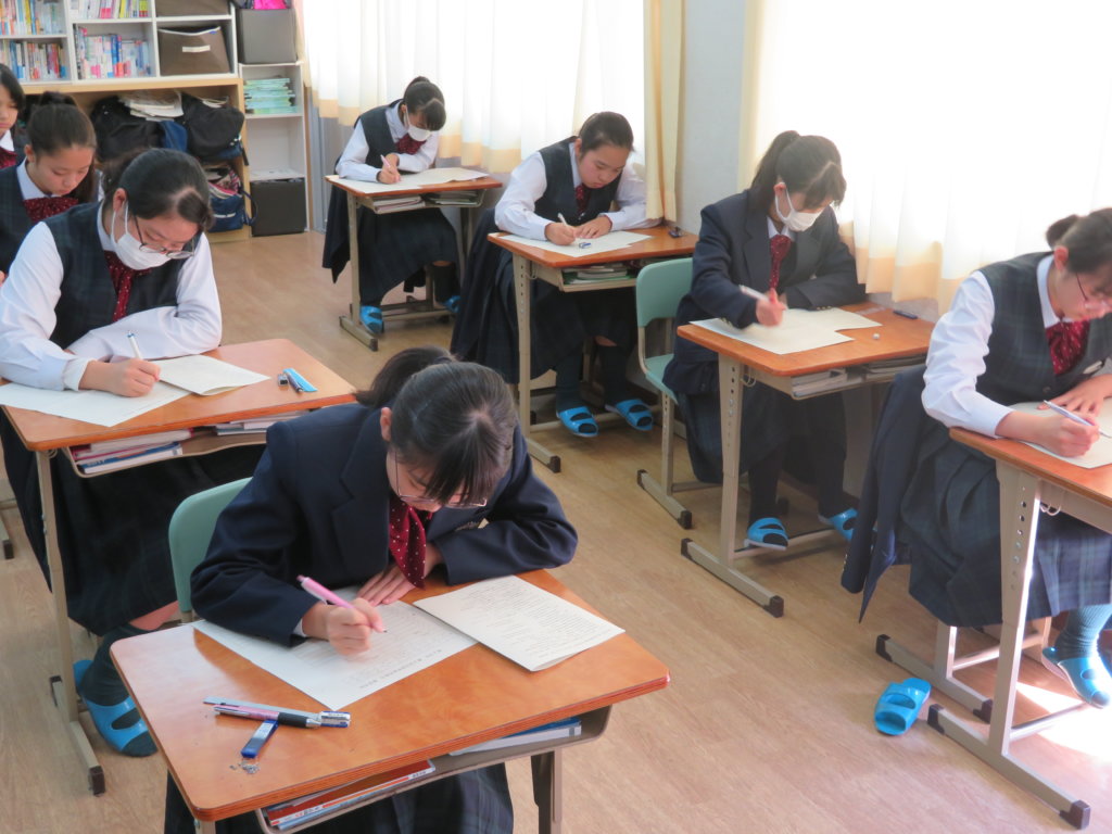 また、J3生は今日は4科目のテストがありました。学校に登校してすぐに学習に取りくむ姿が見られました。