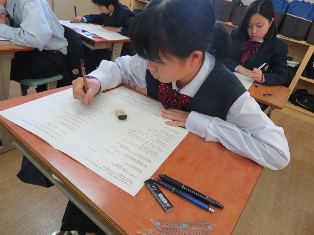 今日は定期考査の最終日でした。最後の時間まで精一杯考える姿が見られました。