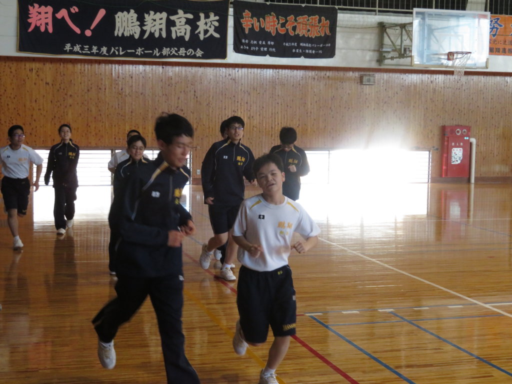 まずは準備運動を行い、その後にウォーミングアップ。心拍数が「140」付近になるように10分間走に取り組みます。