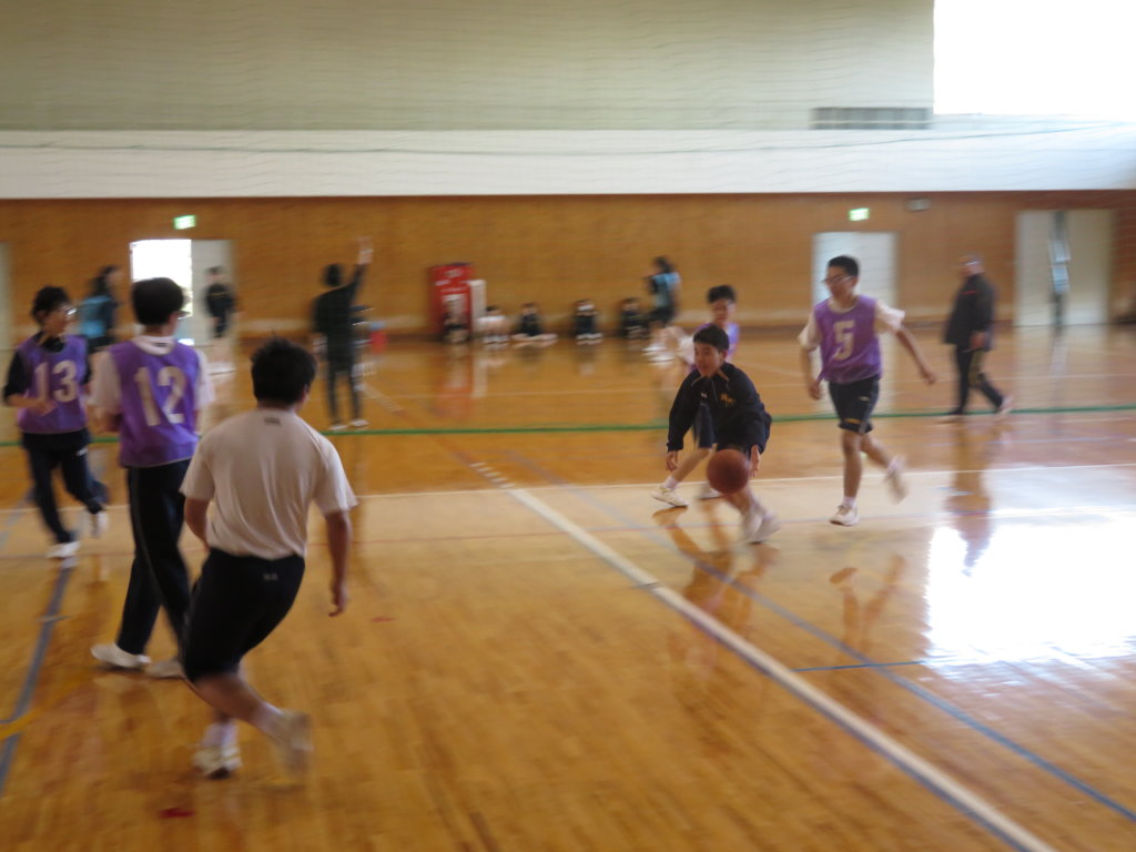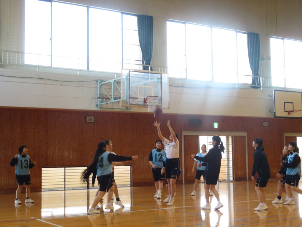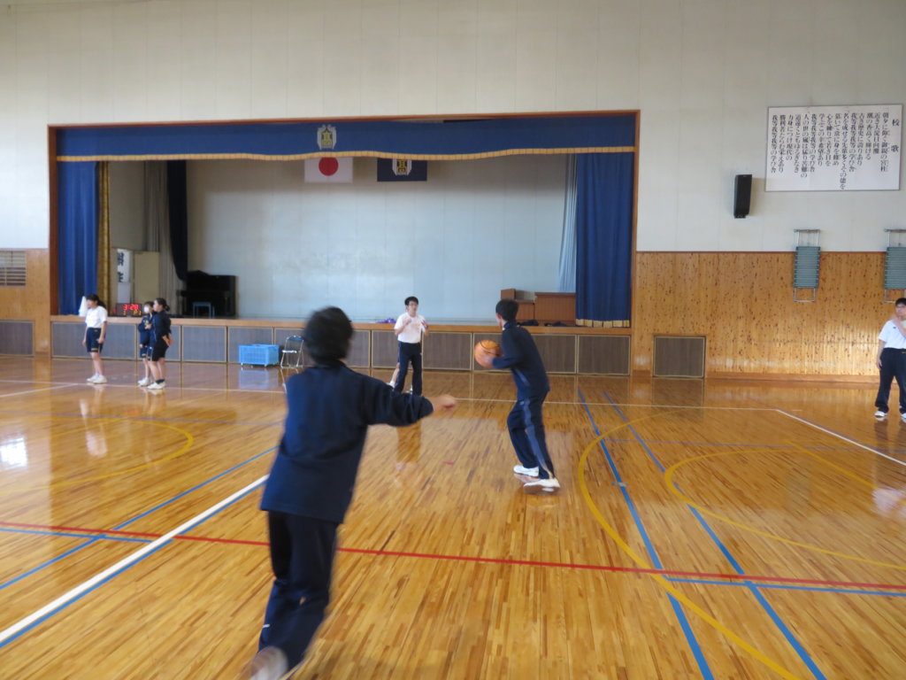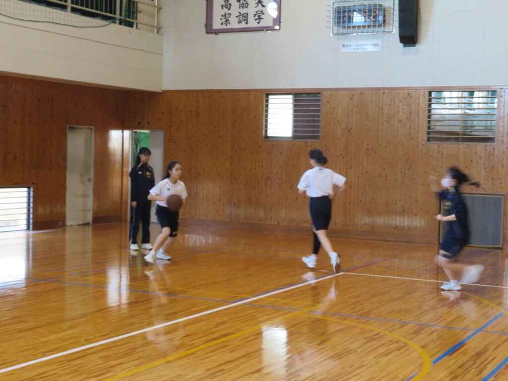 10分間走の後は、各自脈拍を測り、バスケットボールの実技を行います。