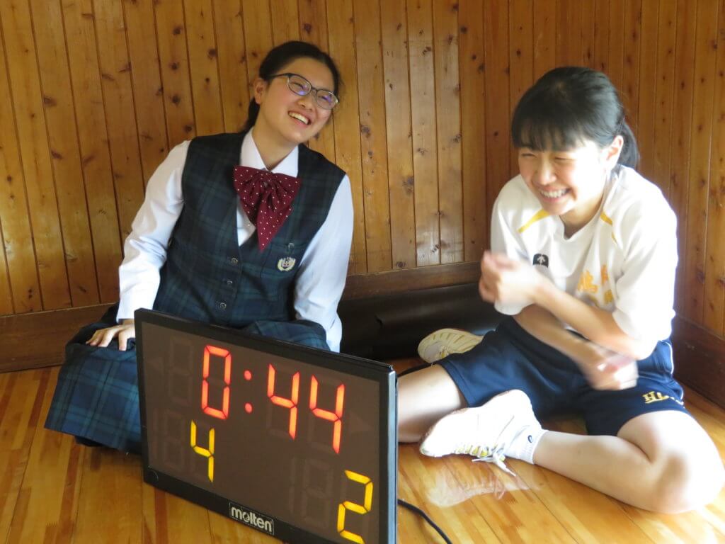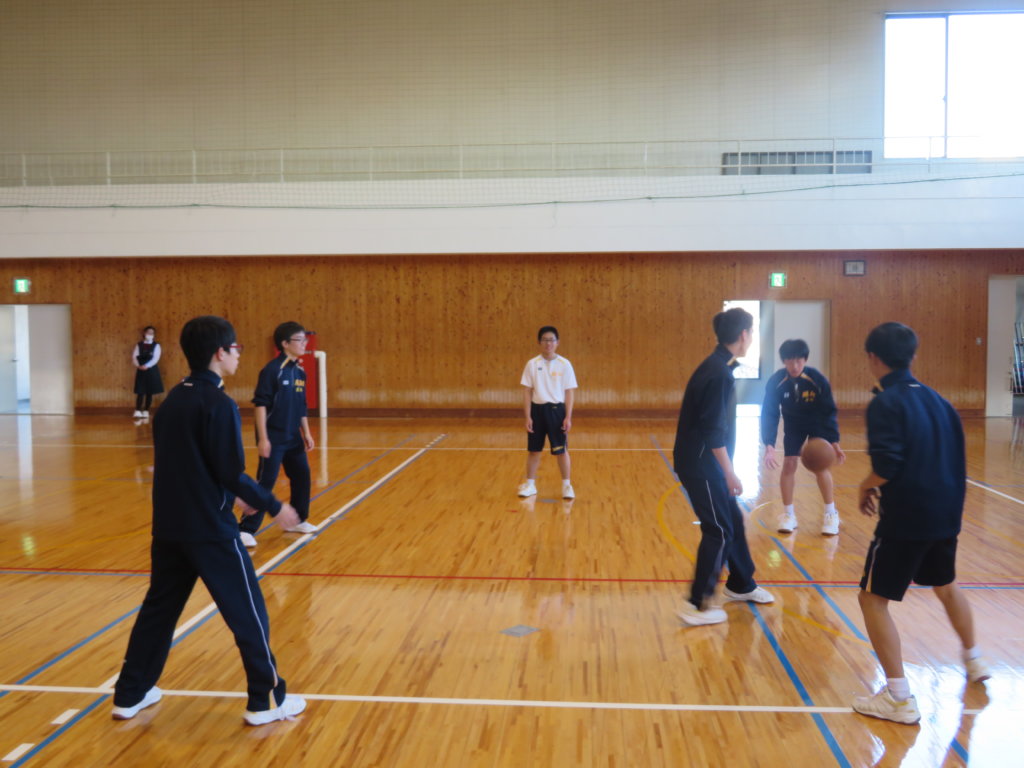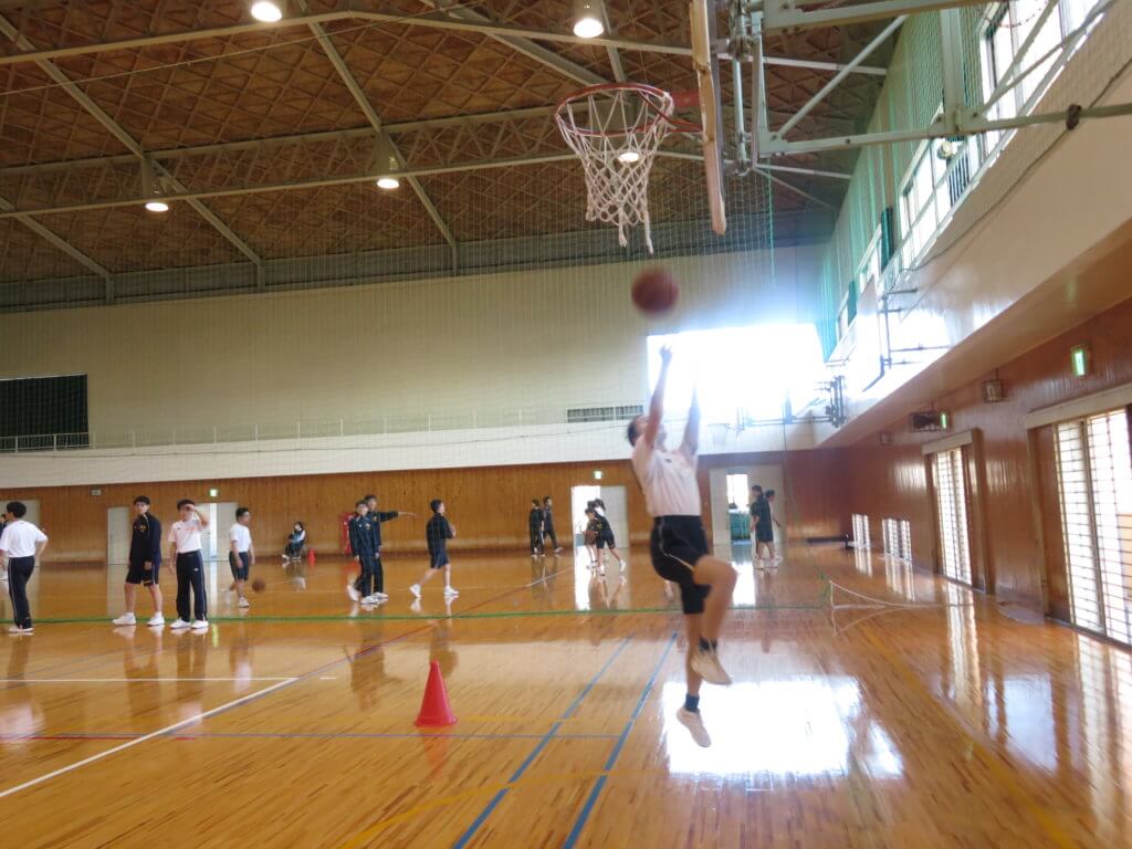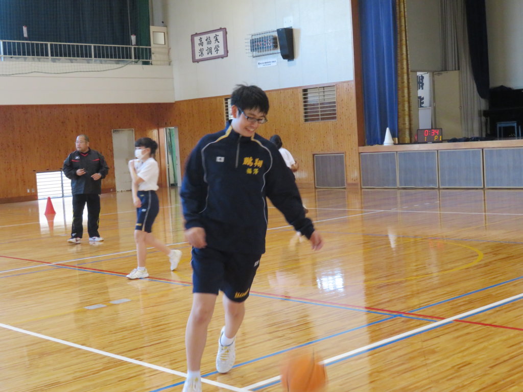 10分間走の後は、各自脈拍を測り、バスケットボールの実技を行います。