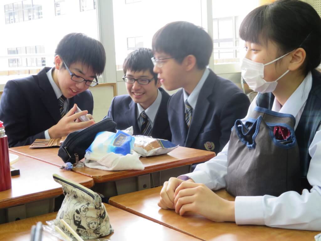 昼食・休憩時間は、食事をとった後、それぞれが有意義な時間を過ごします。例えば、友人と話して過ごしたり、宿題に取り掛かったり、質問しに行ったり、図書室に行ったりと様々です。