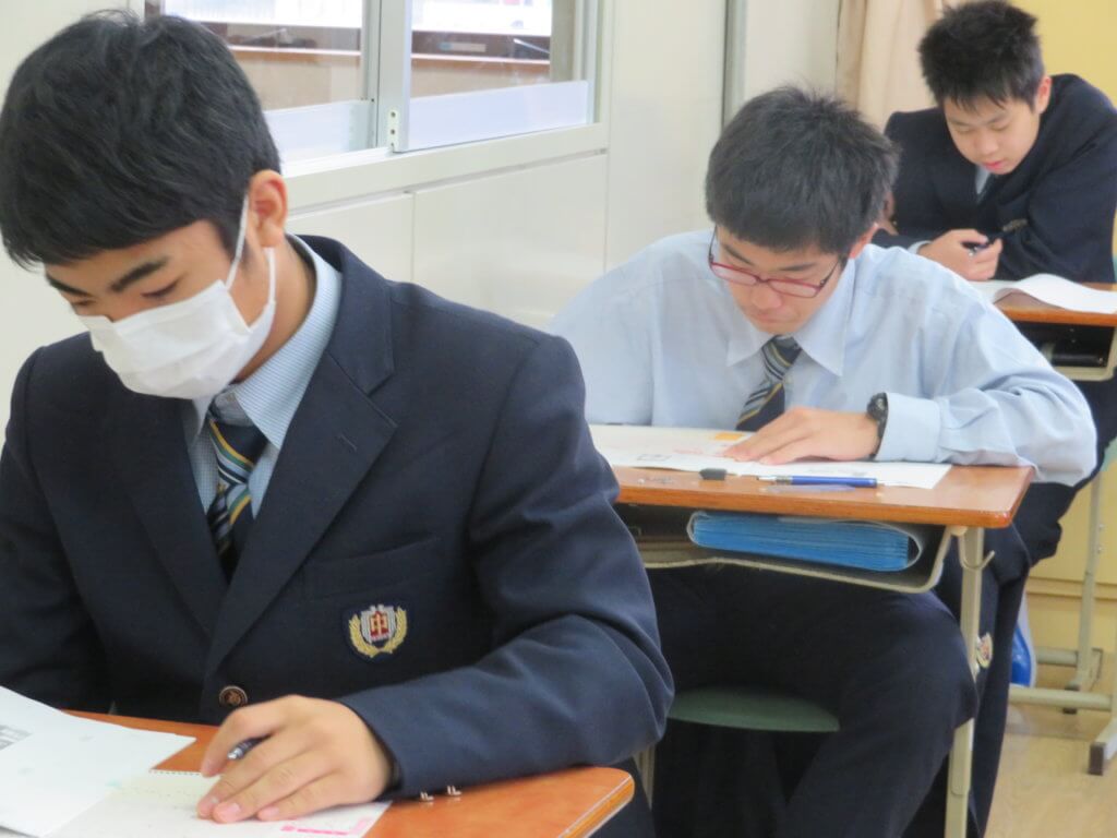 日頃の単語テストなどで覚えた英語を活用し、自分の考えをまとめていました。