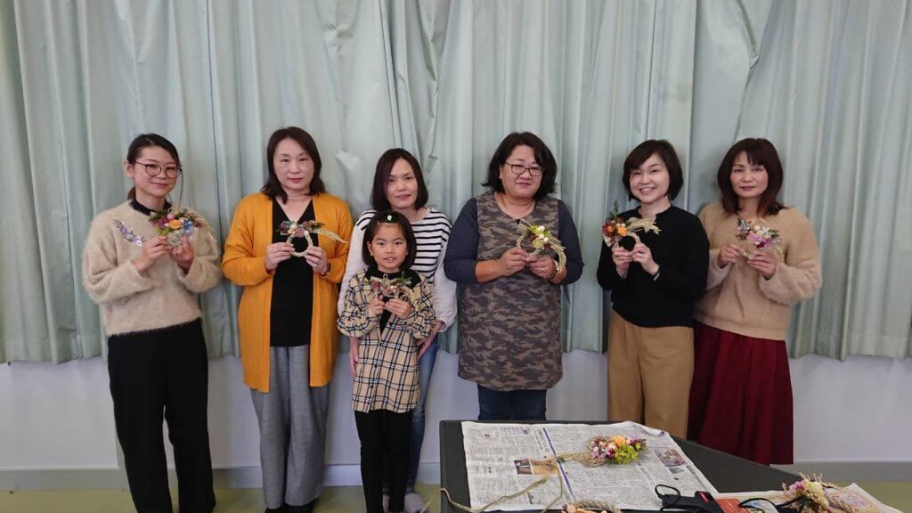 今回は「しめ縄づくり」の様子です。講師の方をお招きし、保護者同士でお話を楽しみながら作成をしていました。