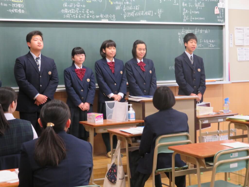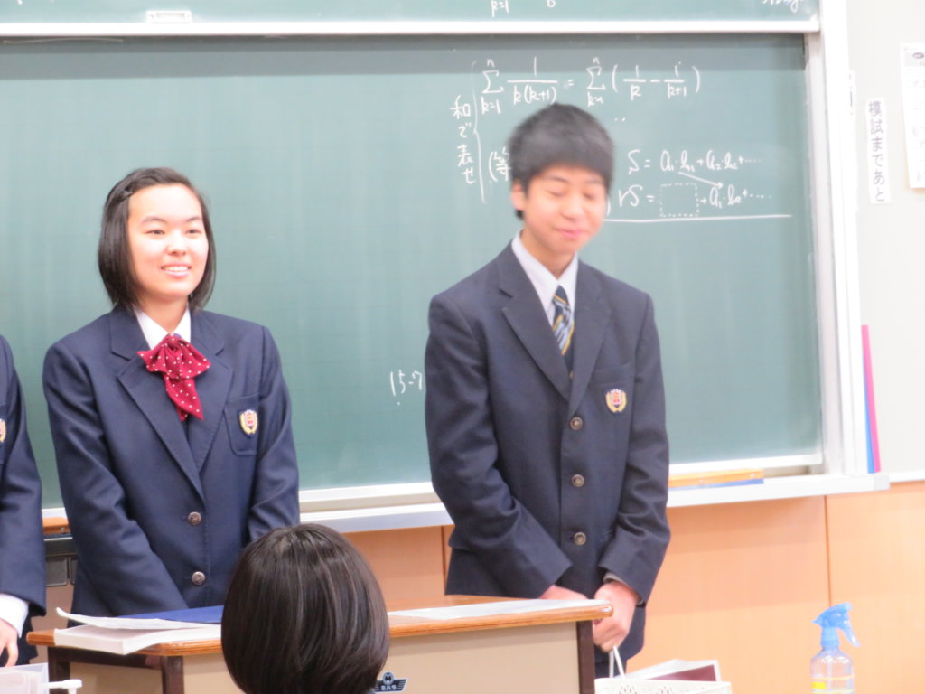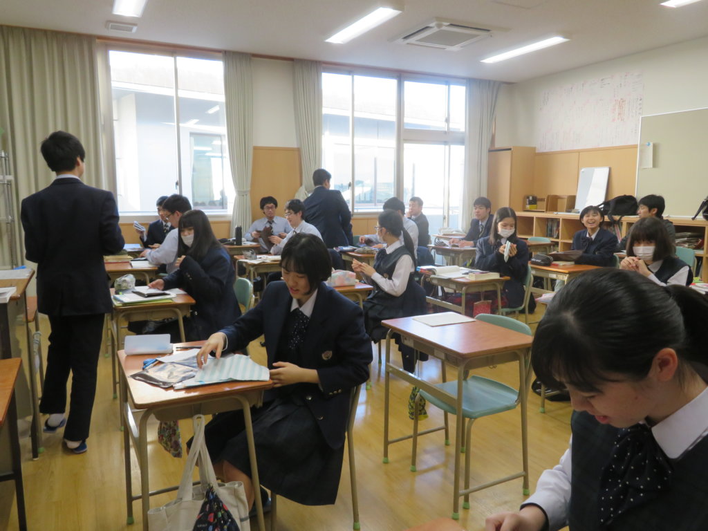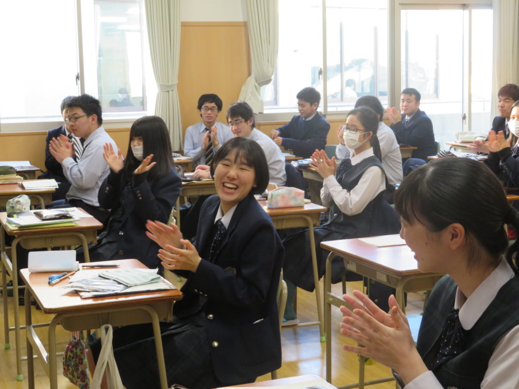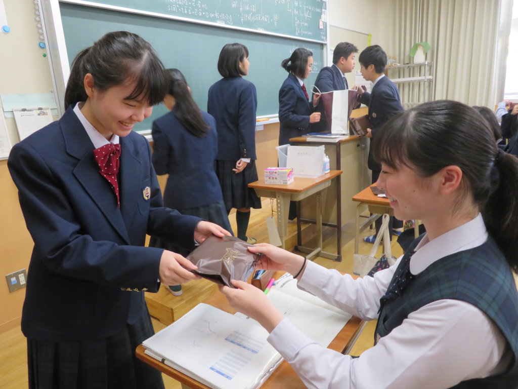 今日は特進英数科の中高一貫コースの先輩方のところへ、大学受験の応援をするために、中学生を代表して生徒会のメンバーが行って来ました。毎年、激励の意味を込めて合格タオルをプレゼントしています。3年1組、2組にお邪魔をさせていただき、先輩方へタオルを手渡ししてきました。