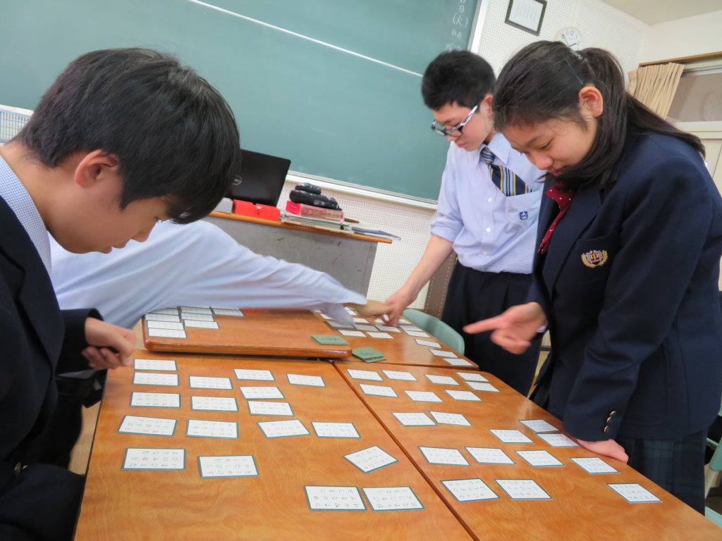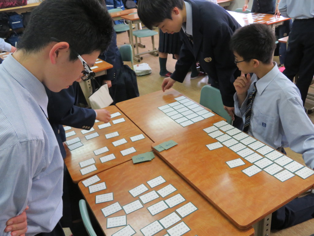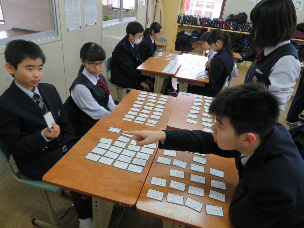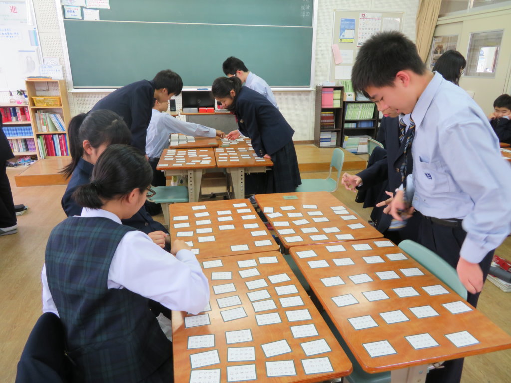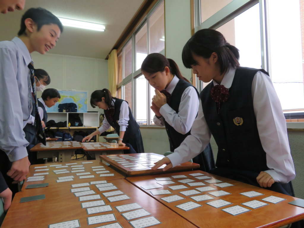国語の授業では、11月末から「古典に親しむ」ことを目的に、百人一首について学ぶ場を展開しつつ、競技の練習も行っています。