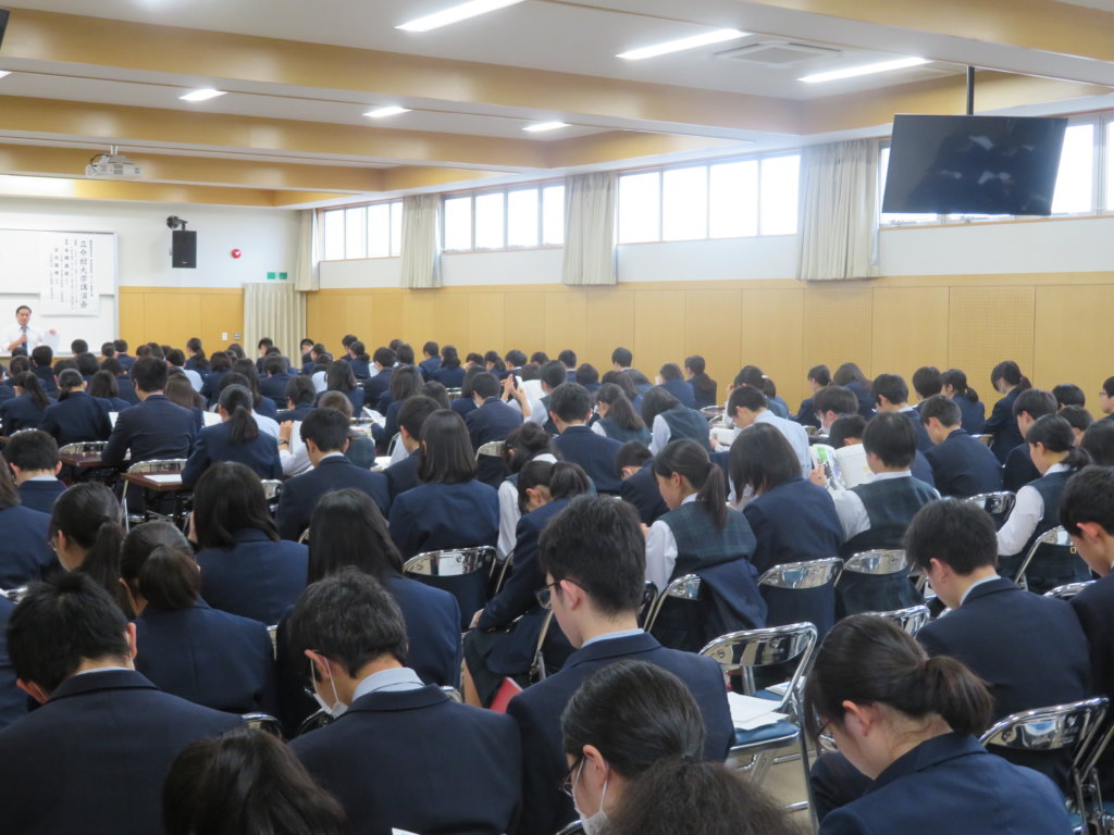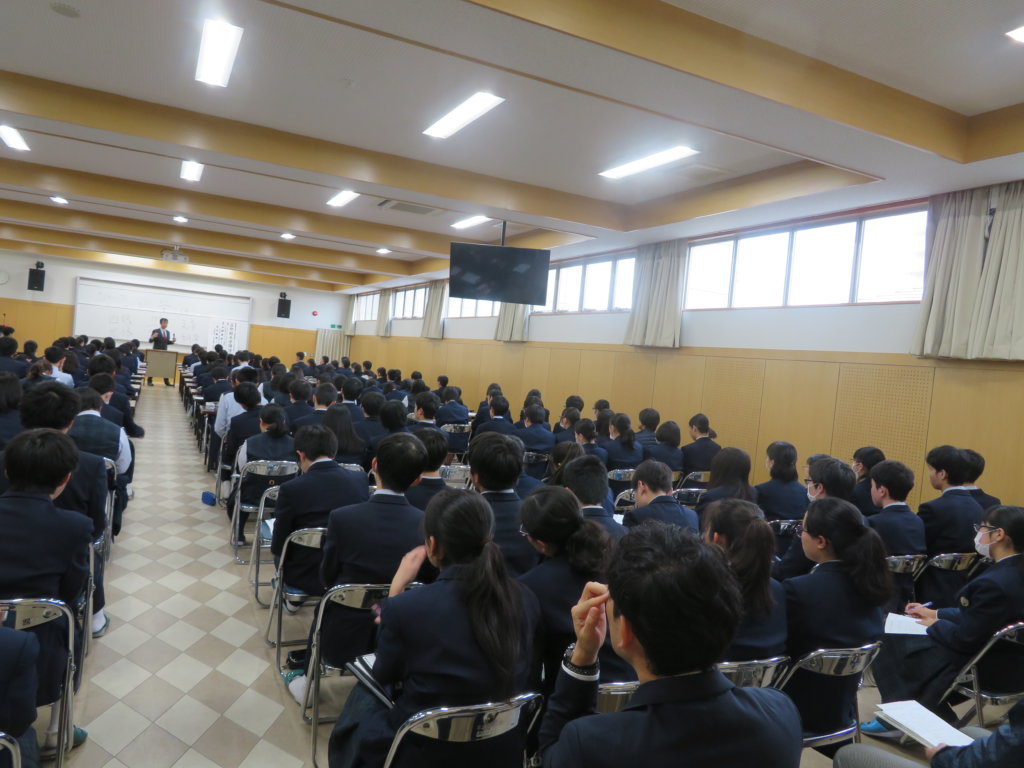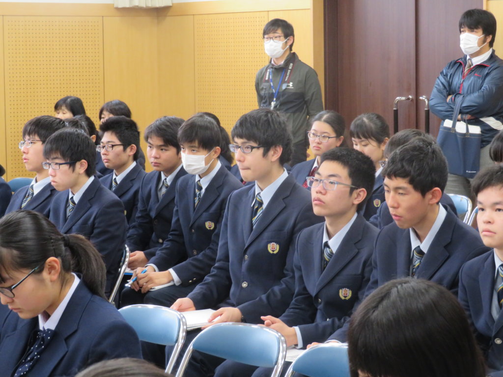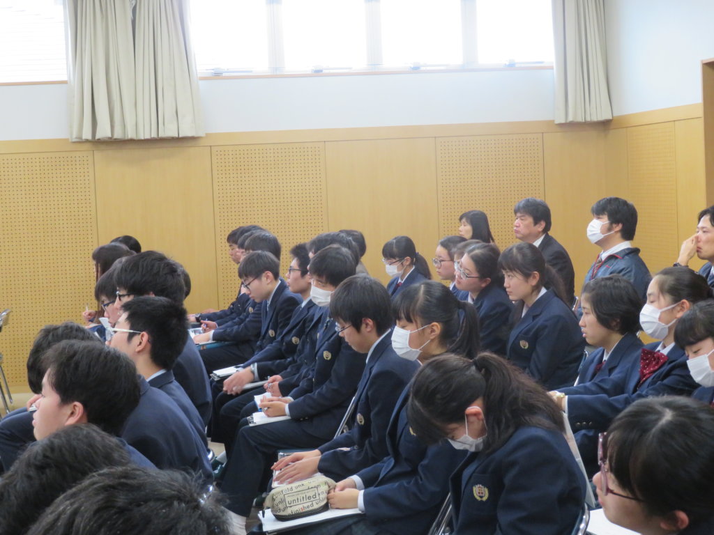今回の講演は、特進英数科の二年生、一年生と一緒に行われました。