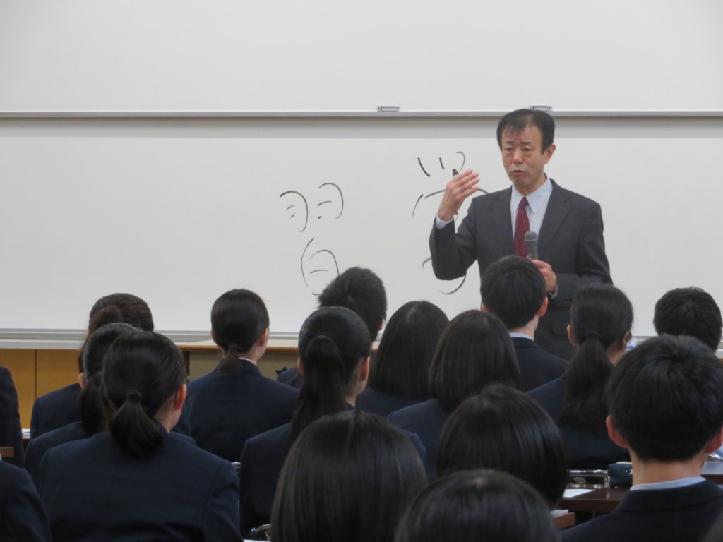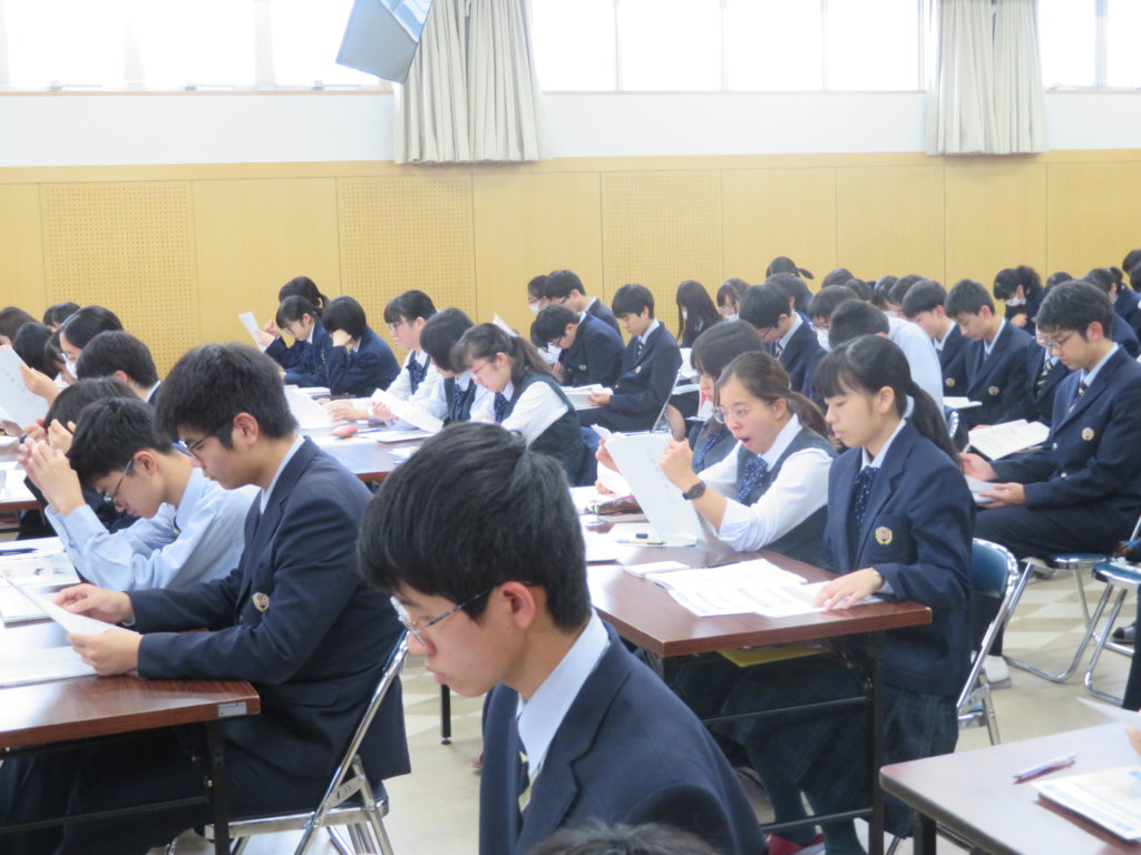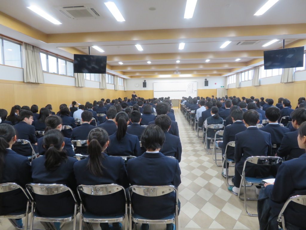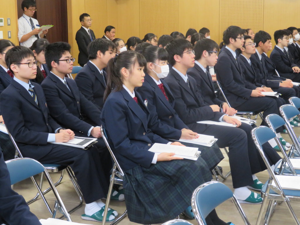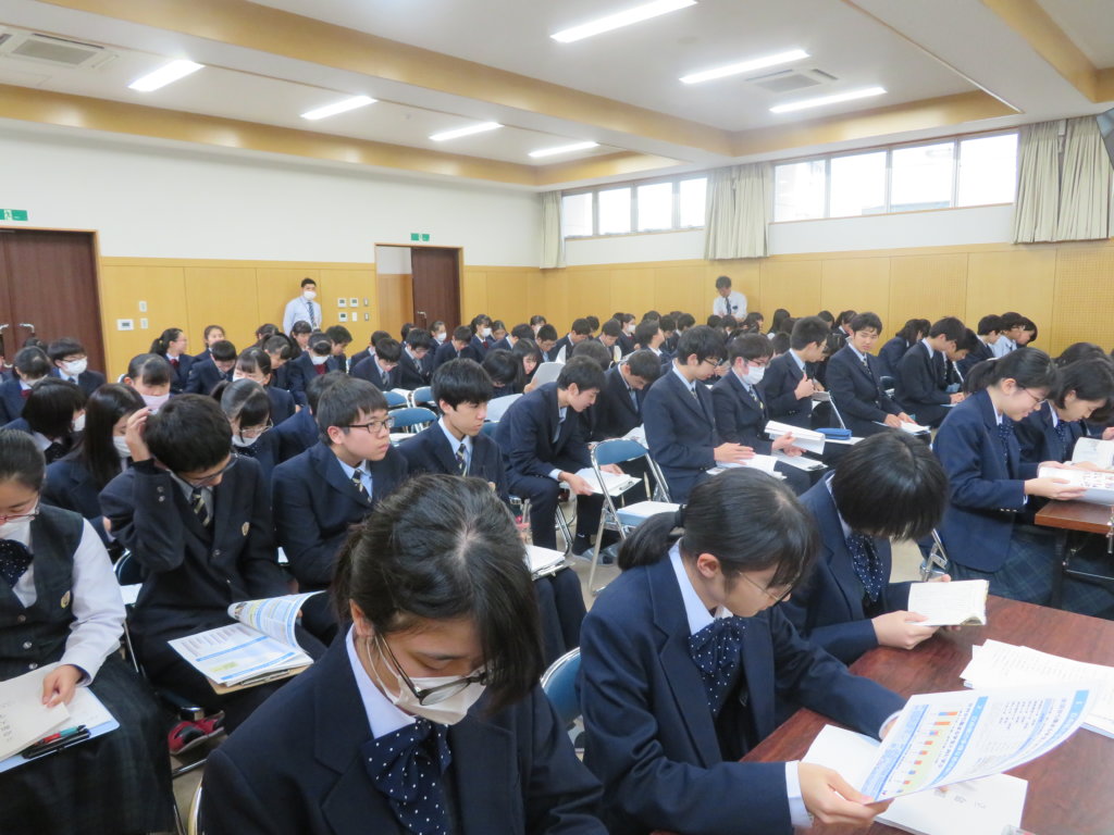 今回の講演は、特進英数科の二年生、一年生と一緒に行われました。