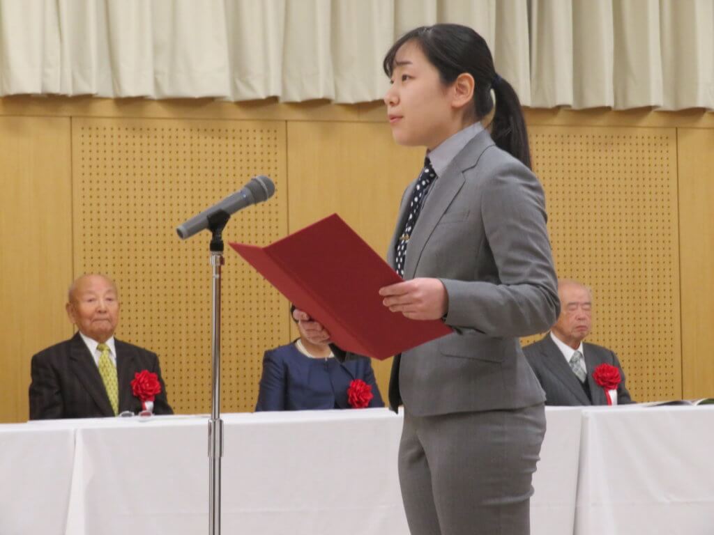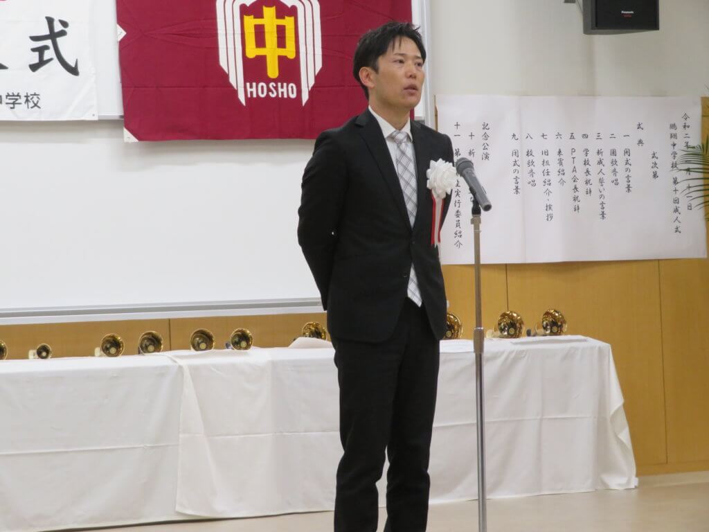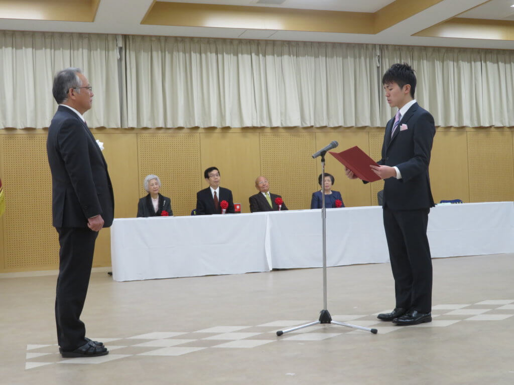 新成人を代表して、宮﨑晃太郎くんと長嶺千花さんが誓いの言葉を話してくれました。新成人の一人一人が、今までの経験を活かして、今後も頑張ってくれると思います。とても楽しみです!