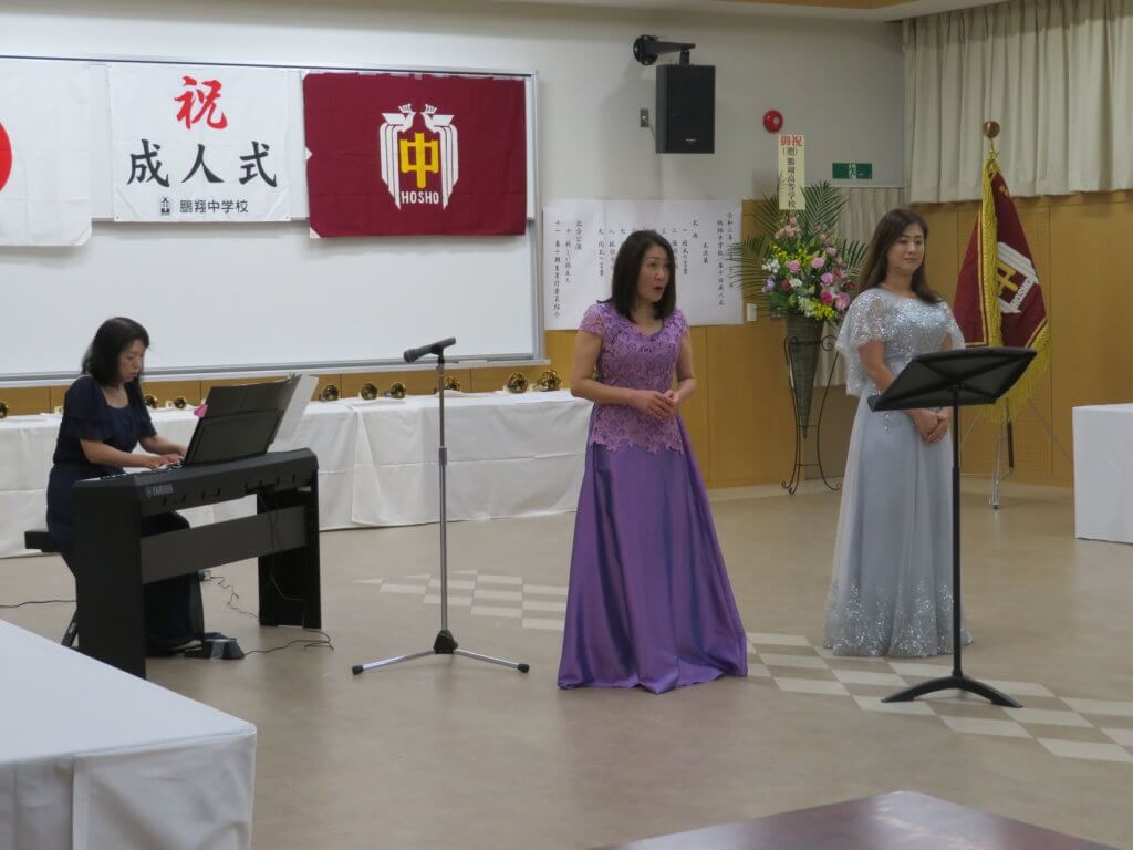 たくさんの来賓の方々に祝福していただき、素晴らしい式になったと思います。また、音楽の先生とピアノ演奏者の土田先生に来ていただき、記念の演奏もしていただきました。