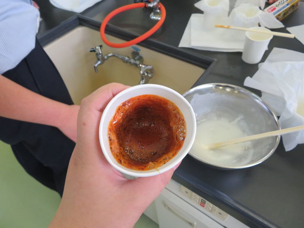 今日は、砂糖と重曹の化学変化を利用して、カルメ焼きを作っていました。