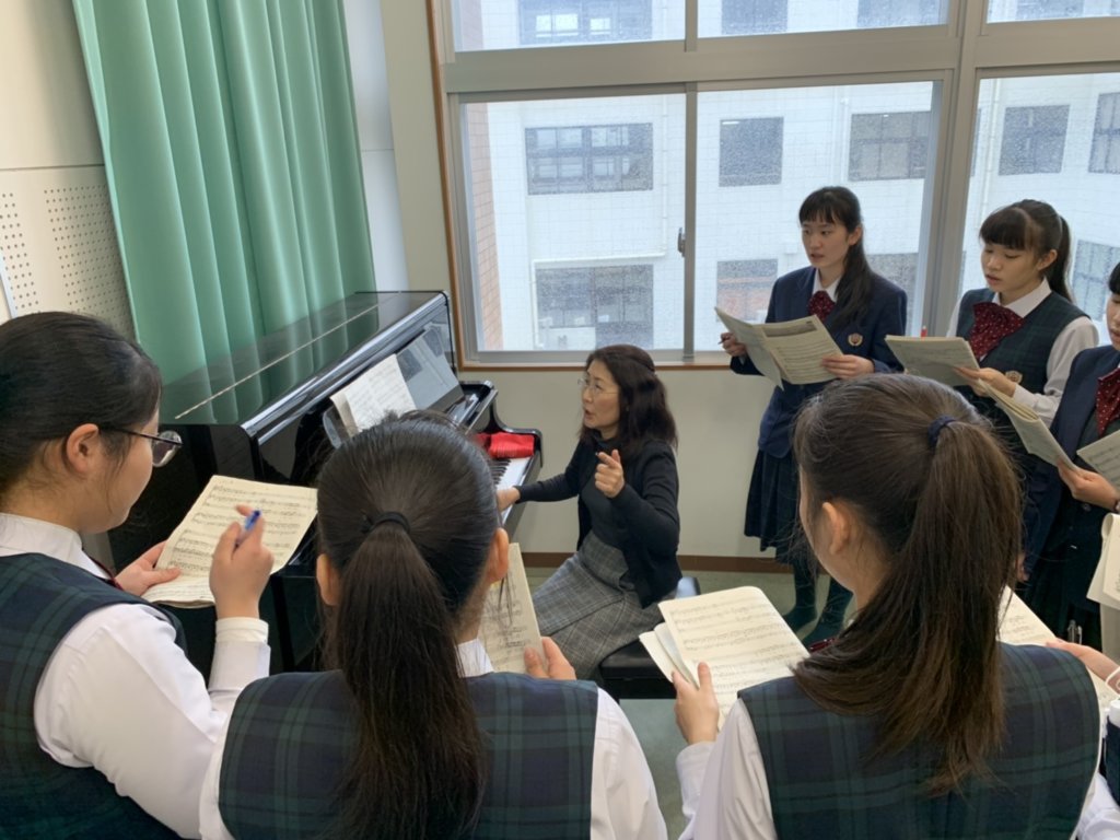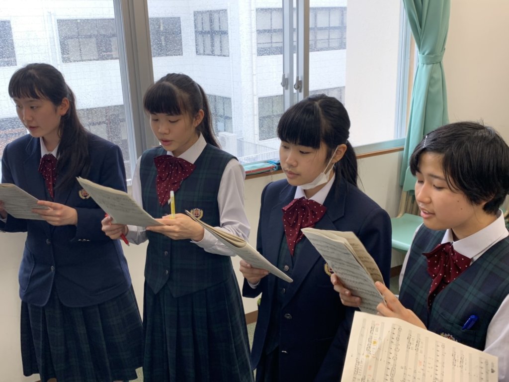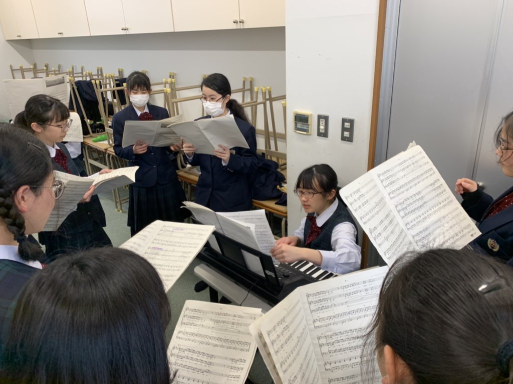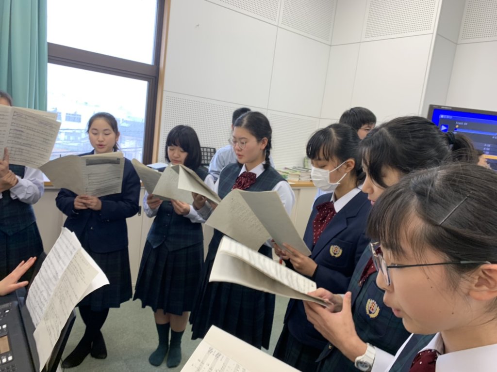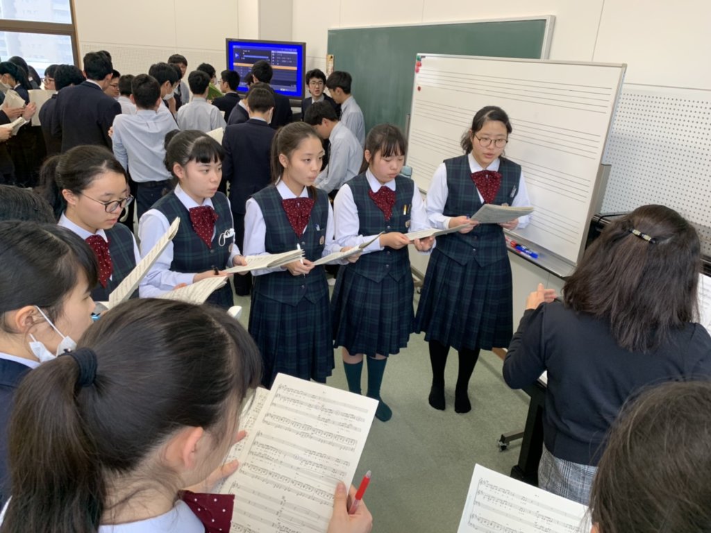 学校ではJ3生が修了証書授与式に向けて歌の練習を行っています。今回は修学旅行から帰ってくるとすぐに、修了証書授与式があることから、早め早めの準備を行っています。パートごとに分かれ、音の確認をしたり、先生からアドバイスをもらったりしています。本番で素晴らしい音楽を届けるために学年全員で頑張ります!