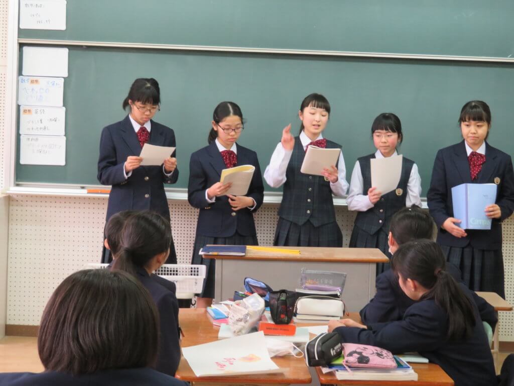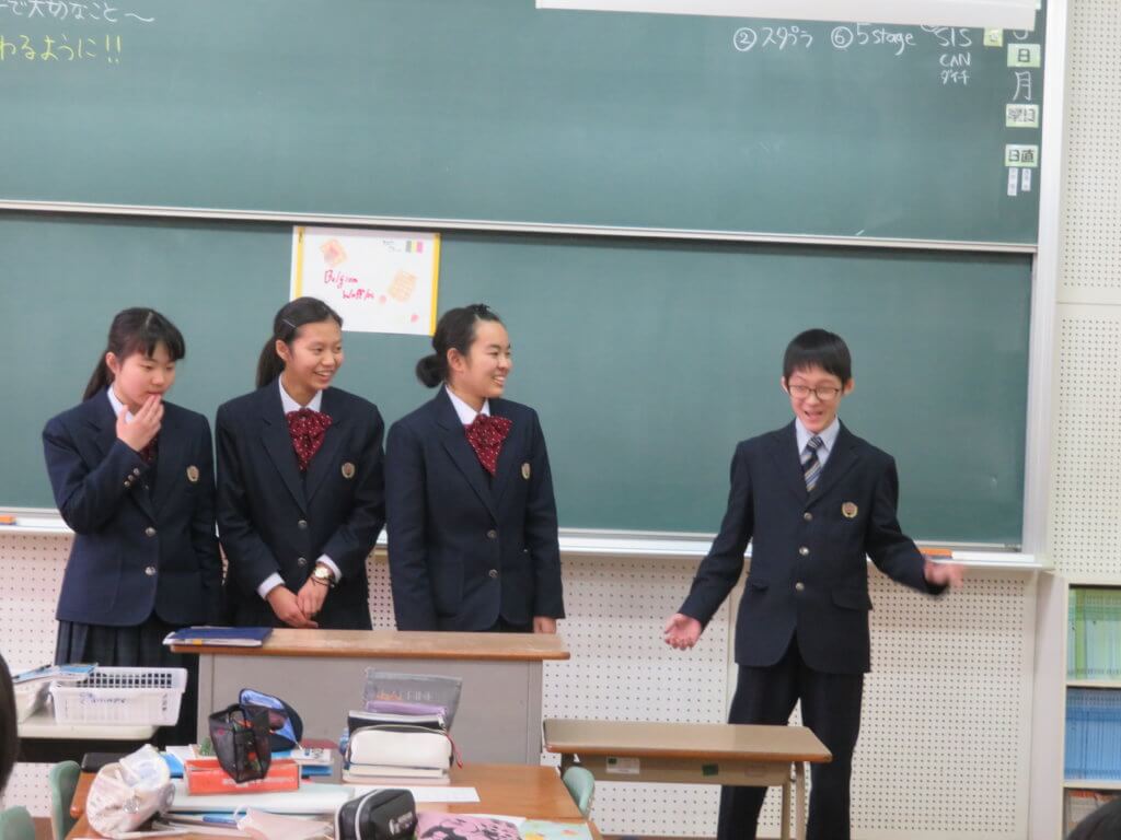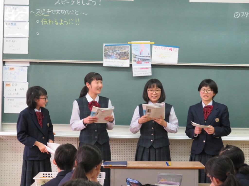 書く力・読む力も大切なことですが、話す力・伝える力も重要となってきます。英語の授業ではこのように英語でスピーチをする授業も取り入れています。このような機会を通して英語を話す楽しさ・表現する楽しさを味わってもらえたらなと思います。