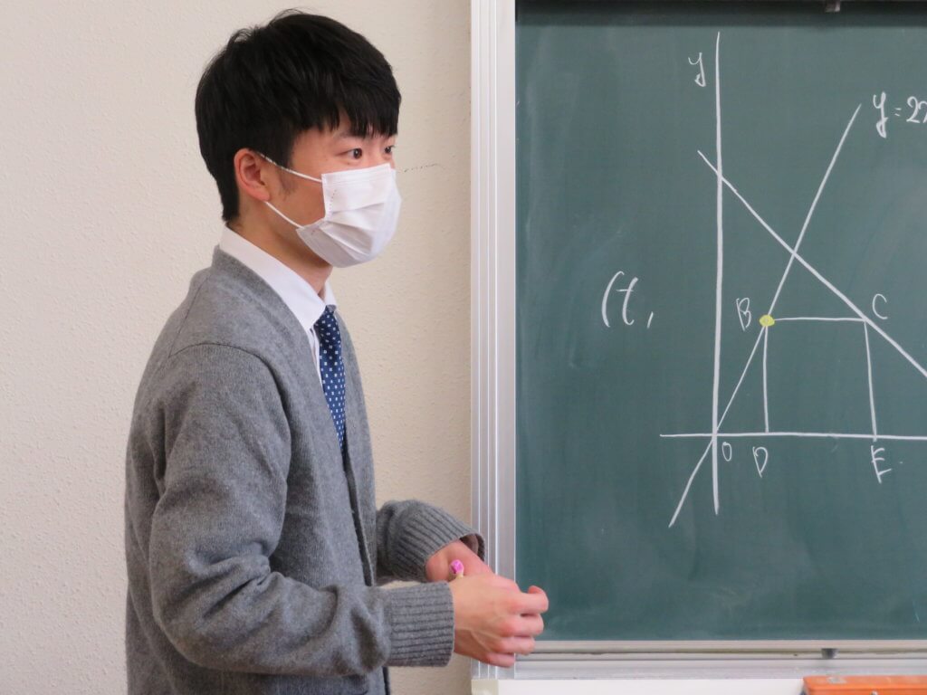 今回は、中萬先生がJ1で数学の研究授業を行いました。