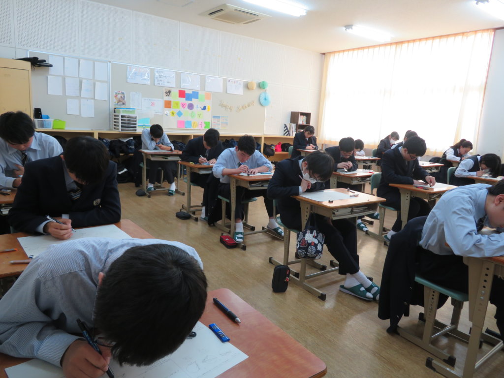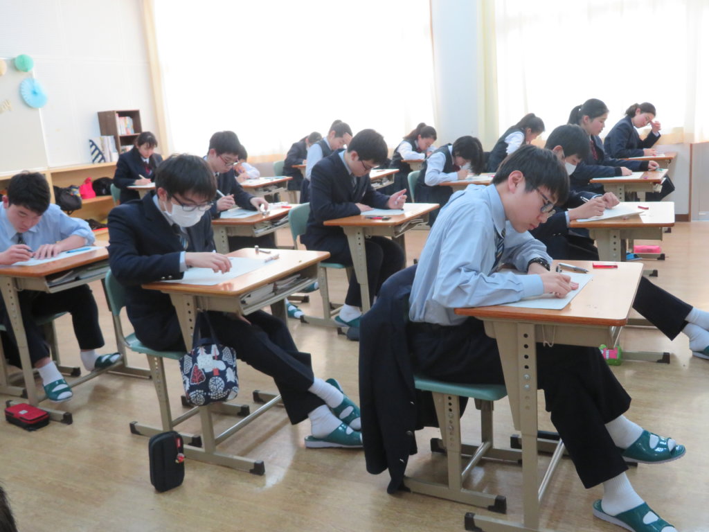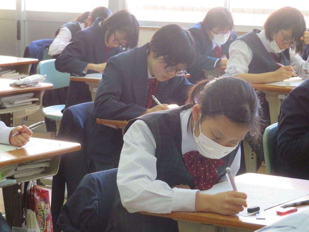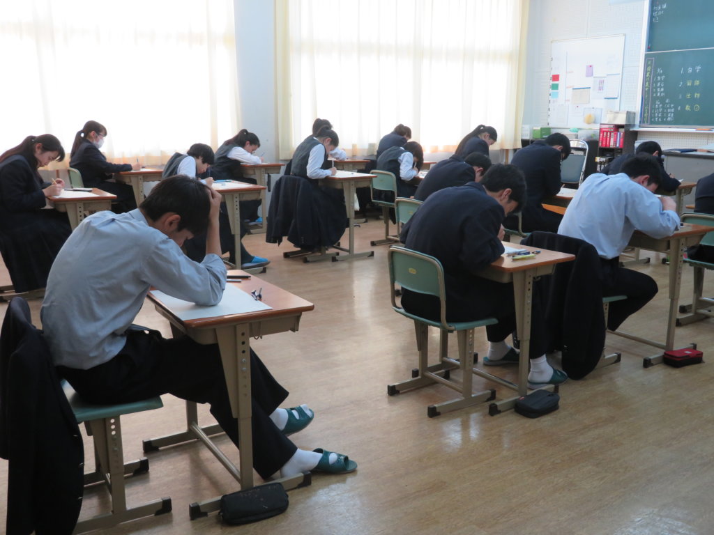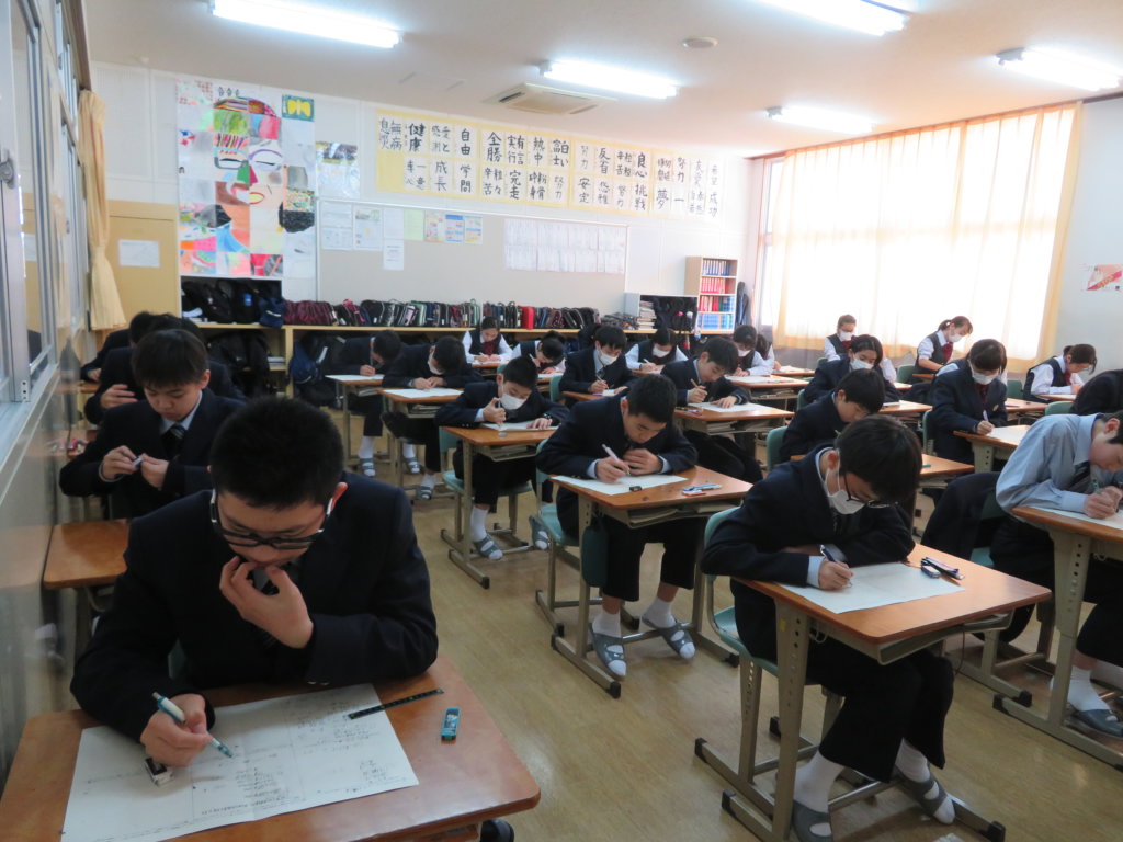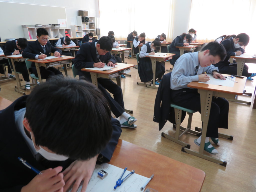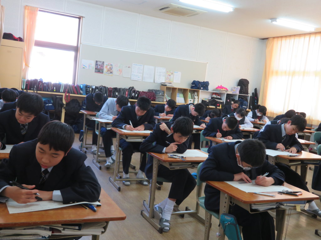 今日から第5回定期考査が始まりました。各学年、今まで頑張ってきた成果を発揮しようと頑張っていました。今年度の定期考査はこれで最後になります。1年間のまとめの意味も込めて、後悔のないように、全力で取り組んでほしいと思います。