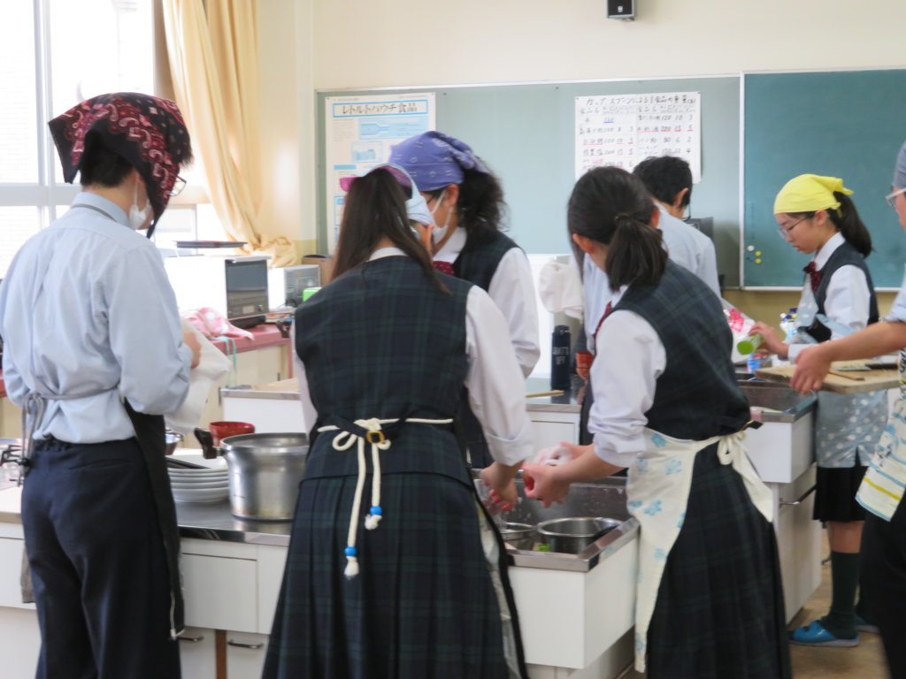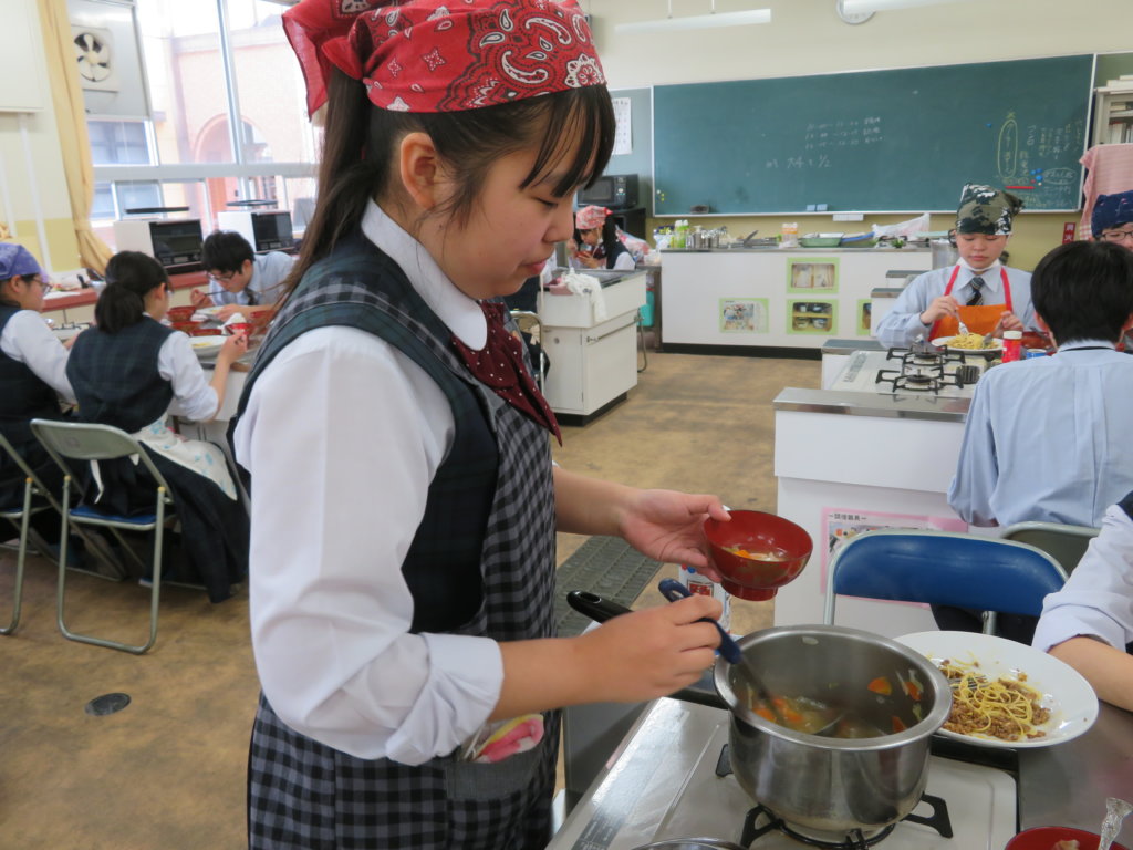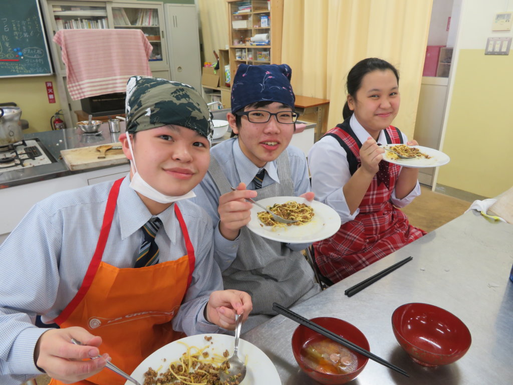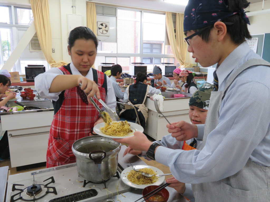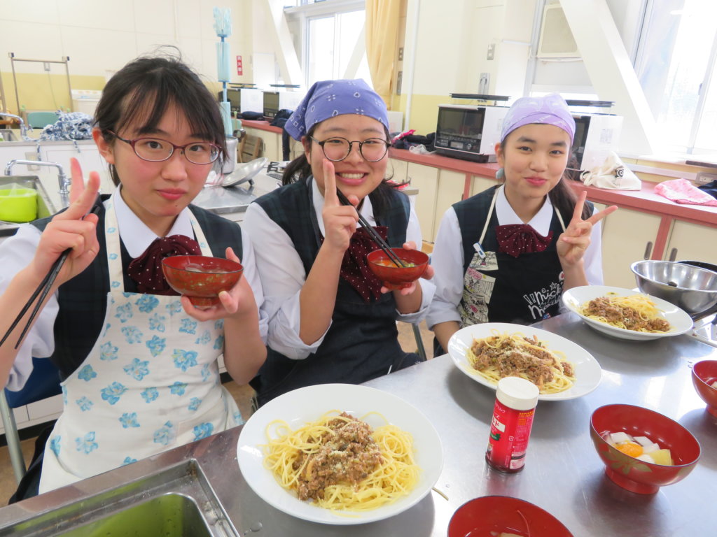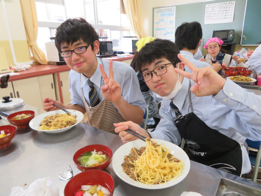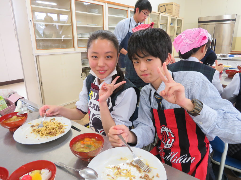 今日はJ3Aが調理実習を行いました。こちらは、スパゲッティーとコンソメスープを作ったようです。みんな美味しそうに食べていました。