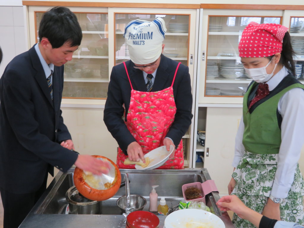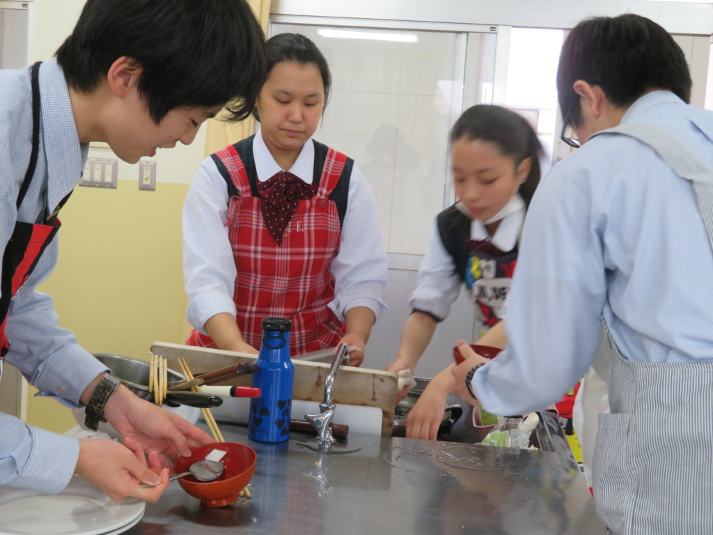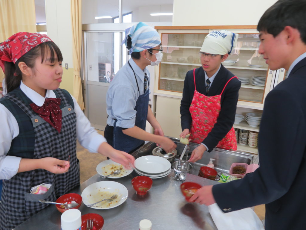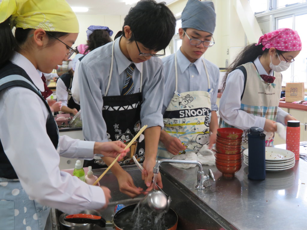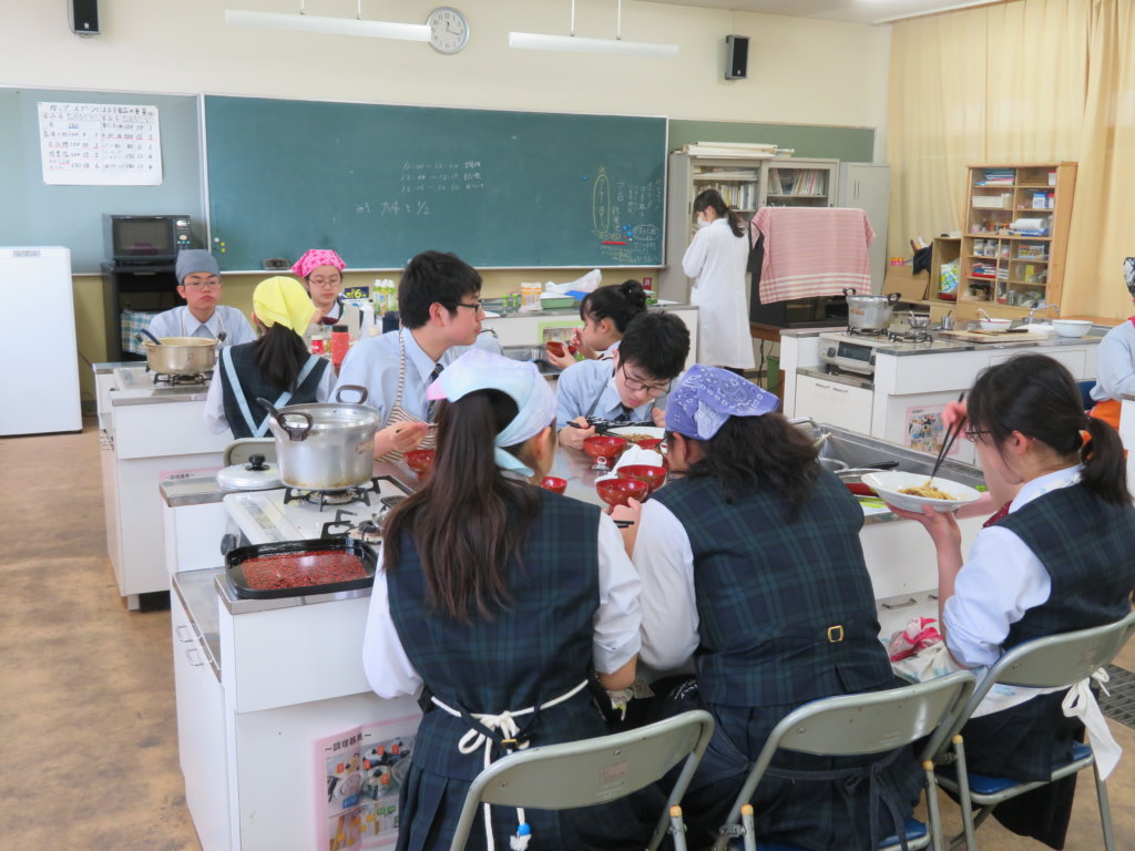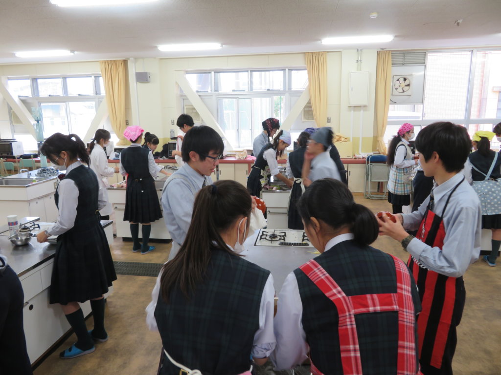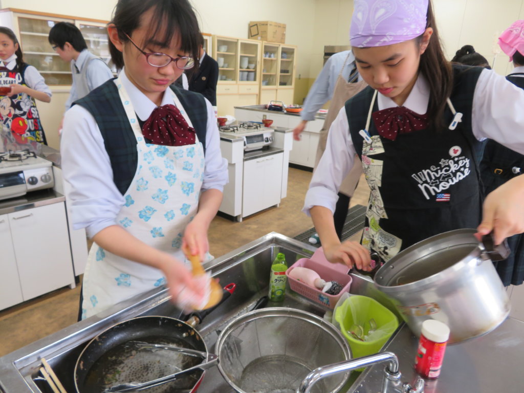 今日はJ3Aが調理実習を行いました。こちらは、スパゲッティーとコンソメスープを作ったようです。みんな美味しそうに食べていました。