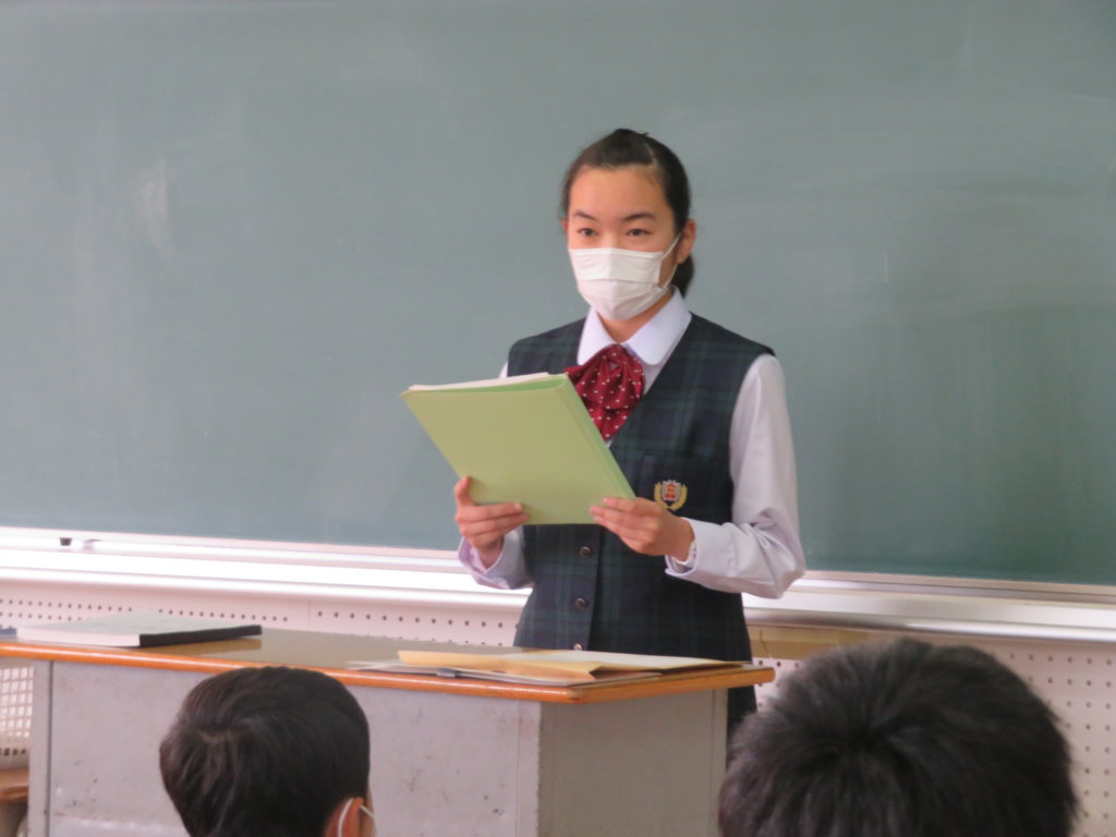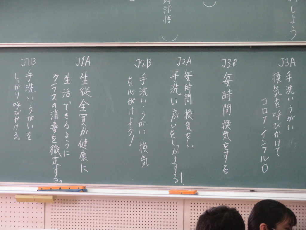 今日は、年間スローガン&テーマ決めを行いました。生徒会役員が各クラスで説明を行い、その後に今年のテーマを考えました。