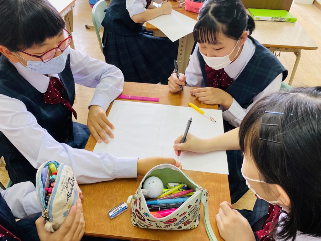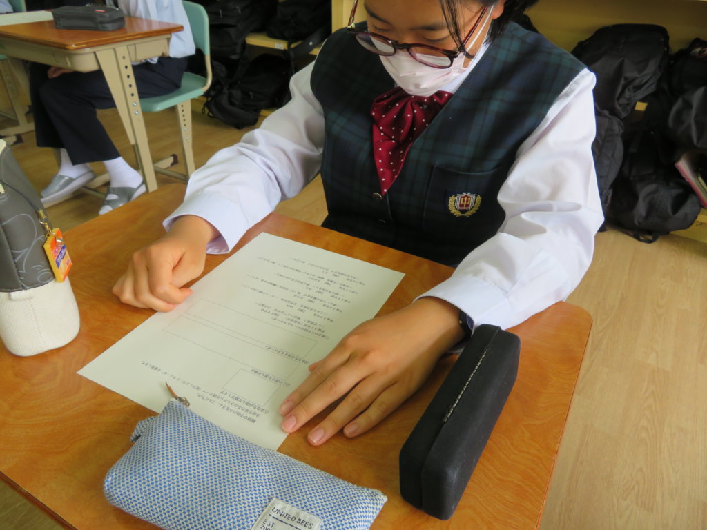 1人1人が漢字1字とその漢字に込めた思いや、今後どのような学校にしていきたいかを考えていました。今年のスローガン発表までもうしばらくお待ちください!!