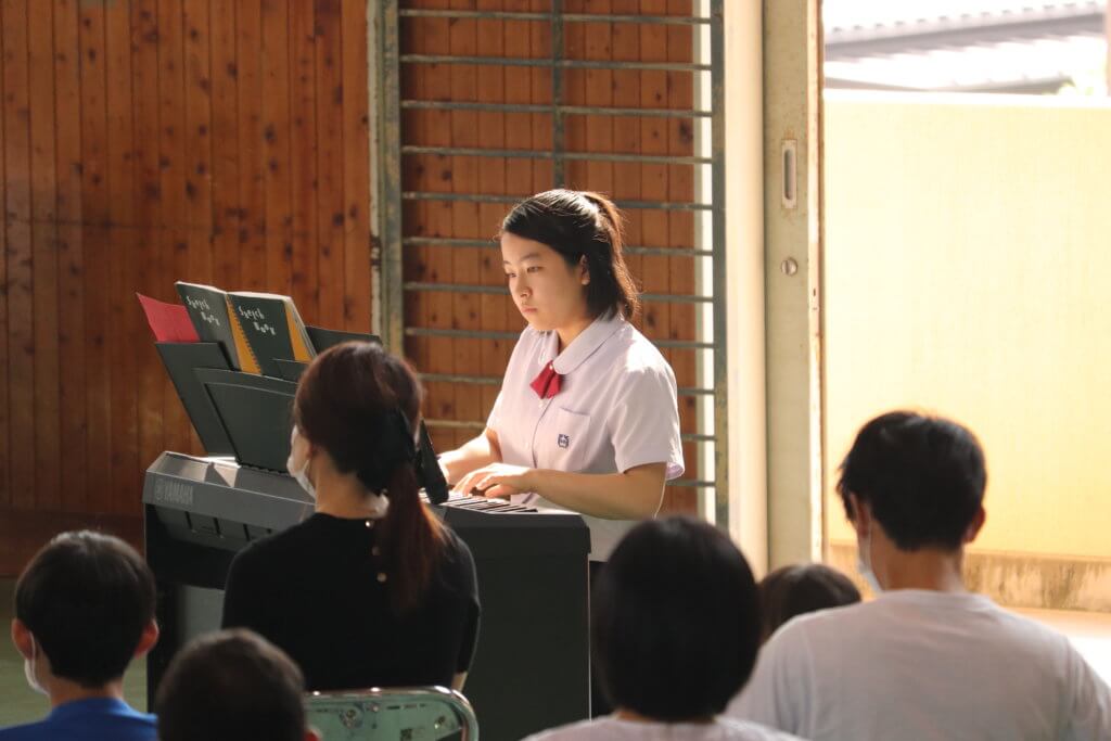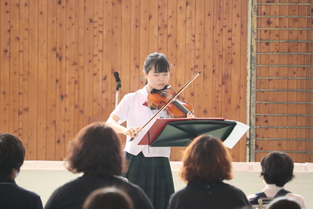 ハンドベル部によるウェルカム演奏とピアノ・バイオリンのアンサンブルで説明会がスタートしました。