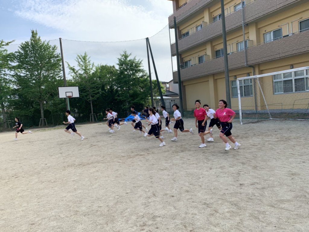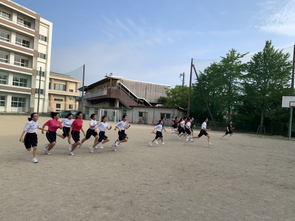 硬式テニス部はグラウンドでランニング等をして体力づくりをしていました。