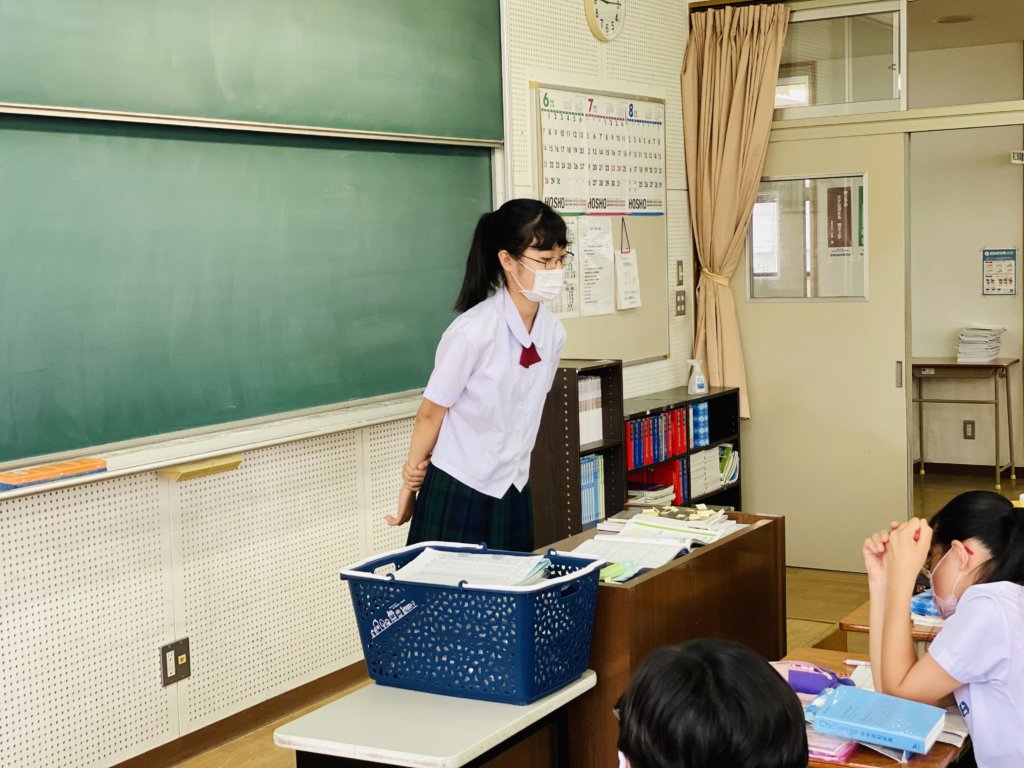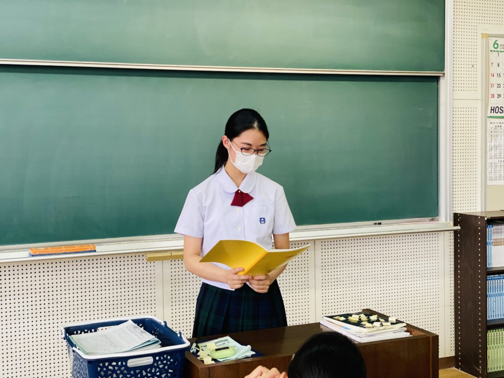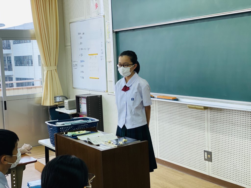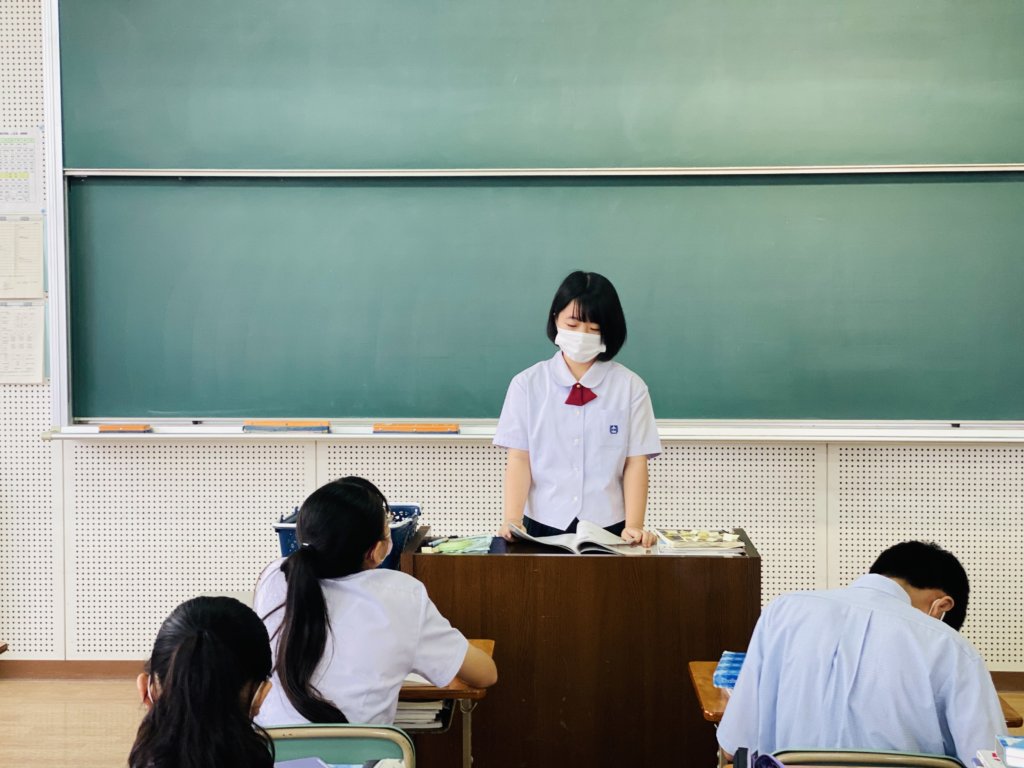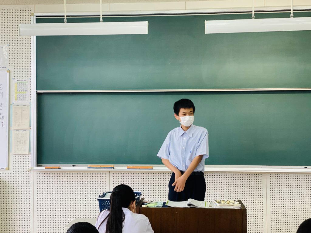 J2の英語の授業で自分の将来の夢についてスピーチを行いました。 それぞれが自分自身の事を学んだ英語を使って、しっかりと発表することができました。今後も学習した英語を使って発表できるように英語学習を頑張りましょう。