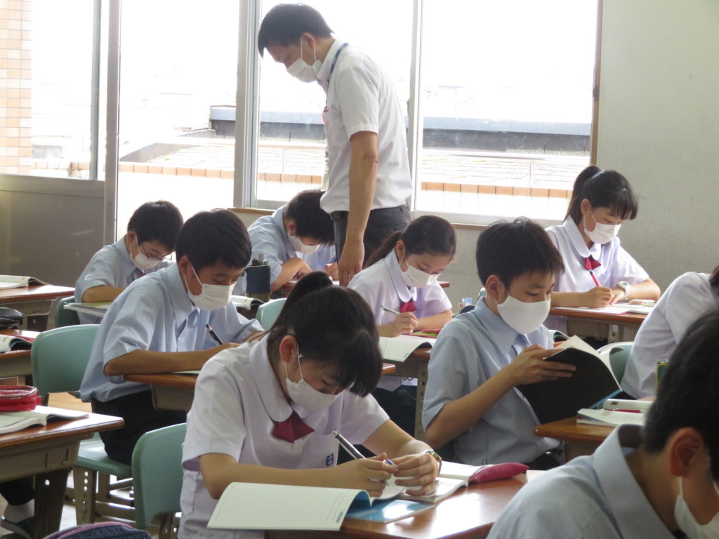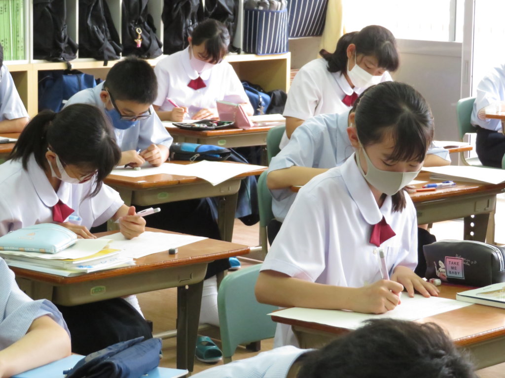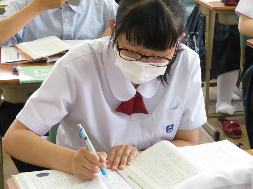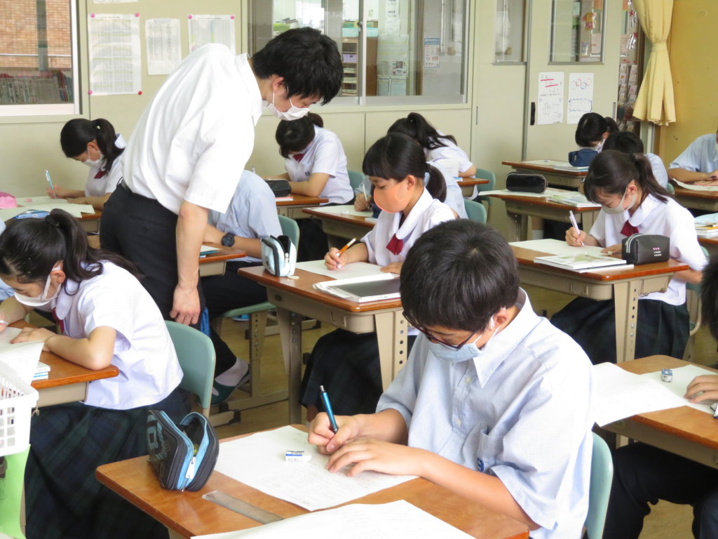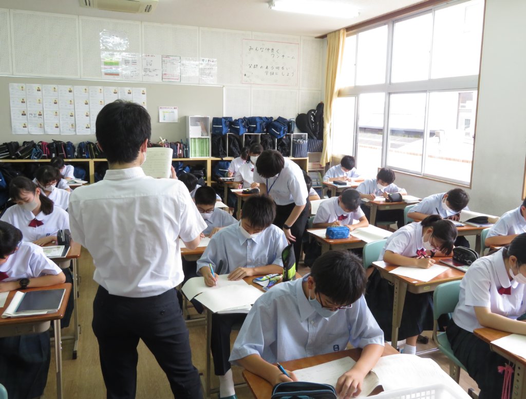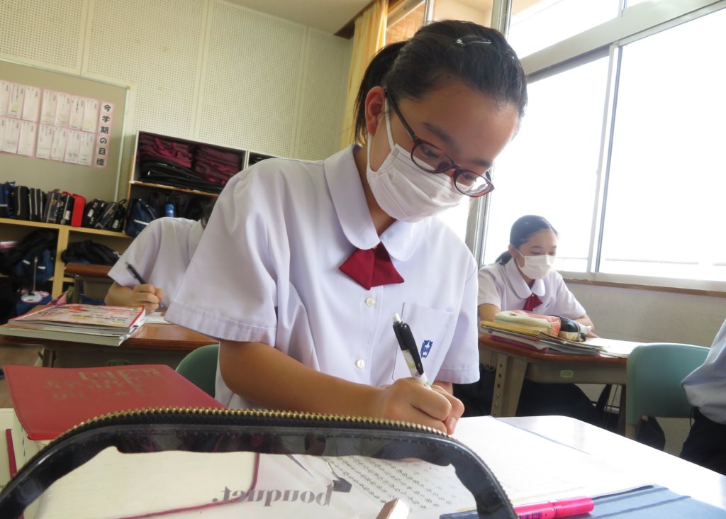 J2の授業の様子です。理科の授業では、小テストが行われました。国語の授業では、口語文法の復習をしていました。