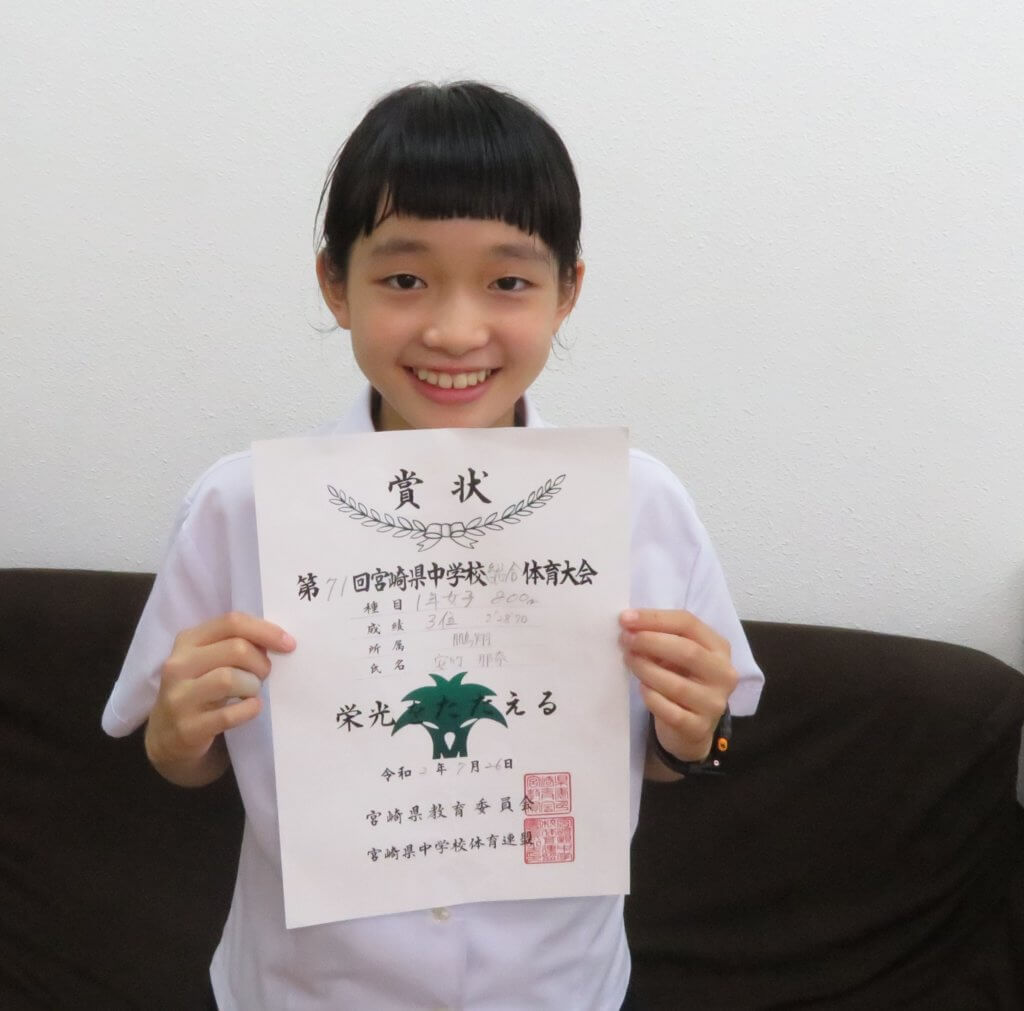 陸上部 1年女子800m 第3位 安竹那奈さん(小戸小出身)