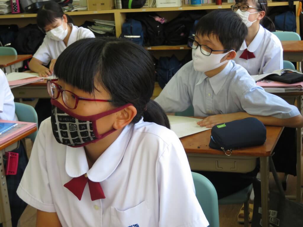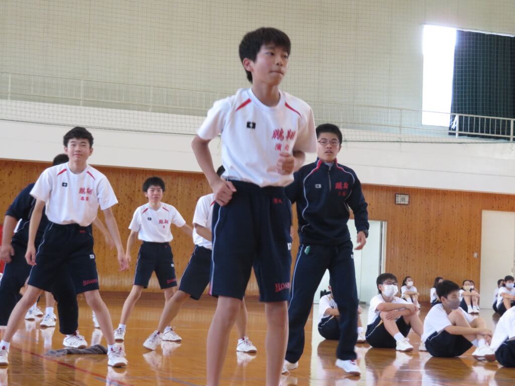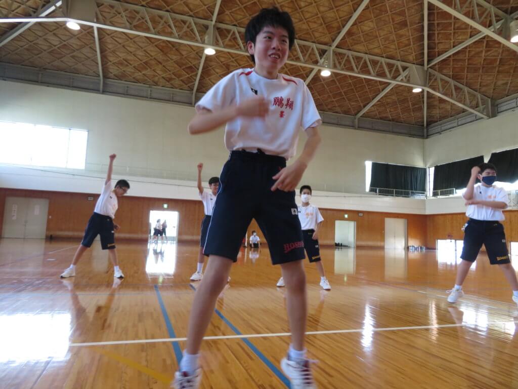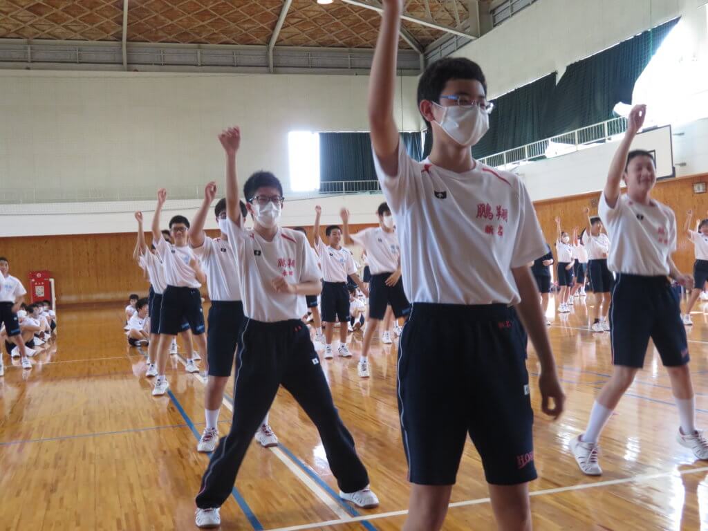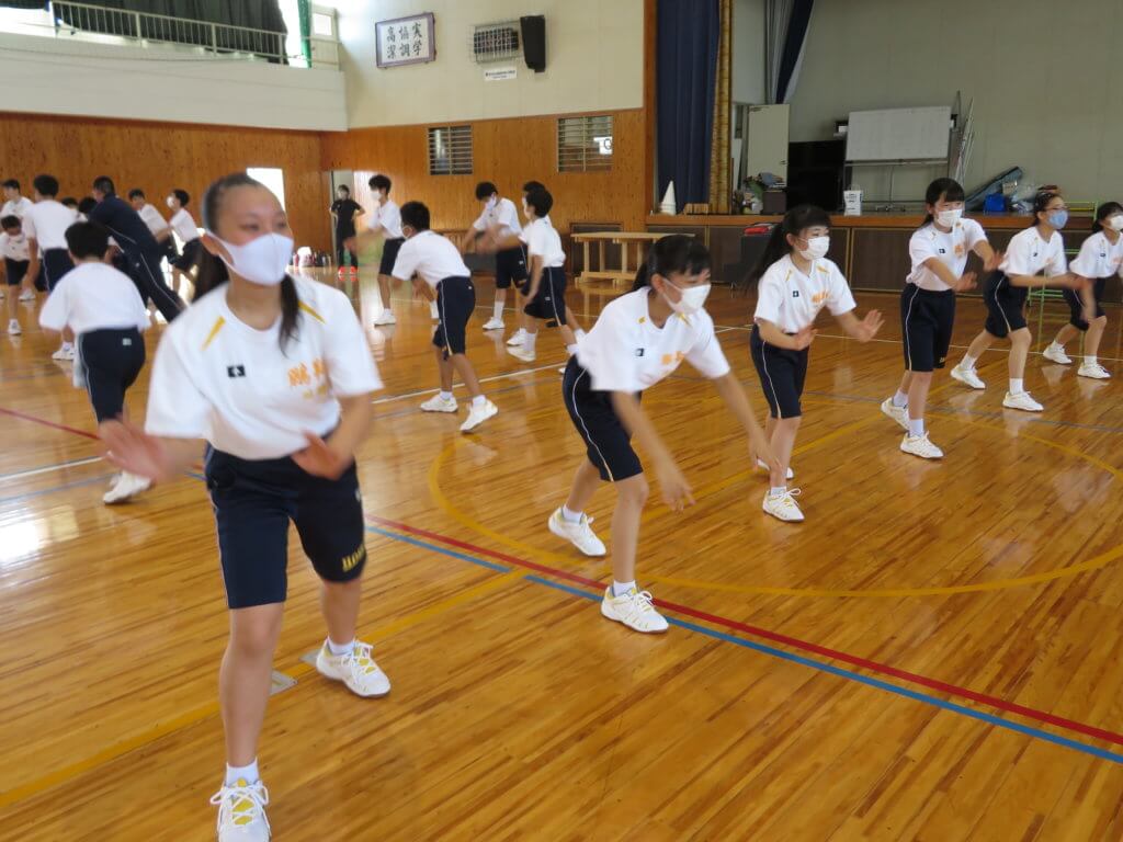 今日も8時から授業開始です。今日は、1・2限目に体育があり、団別に整列しラジオ体操や、ソーラン節の練習が行われました。