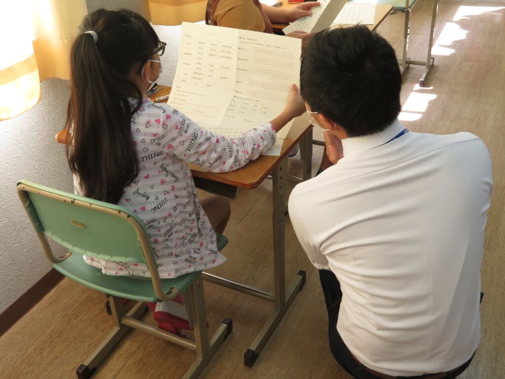 今日は小学生対象のサマースクールが行われました。今日行われた授業は、「英会話」「算数」「理科」でした。