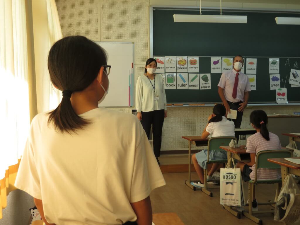 英会話では、お買い物ごっこを通して、単語や会話の練習を行いました。ALTの先生と一緒に発音の練習をしたり、自己紹介をしたりしました。