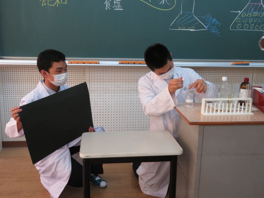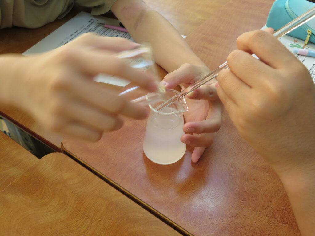 理科では水と食塩を使った実験を通して溶解について学習しました。真夏に雪を見ることができました。意欲や知識の向上をする機会を与えることが出来ていればと思うところです。